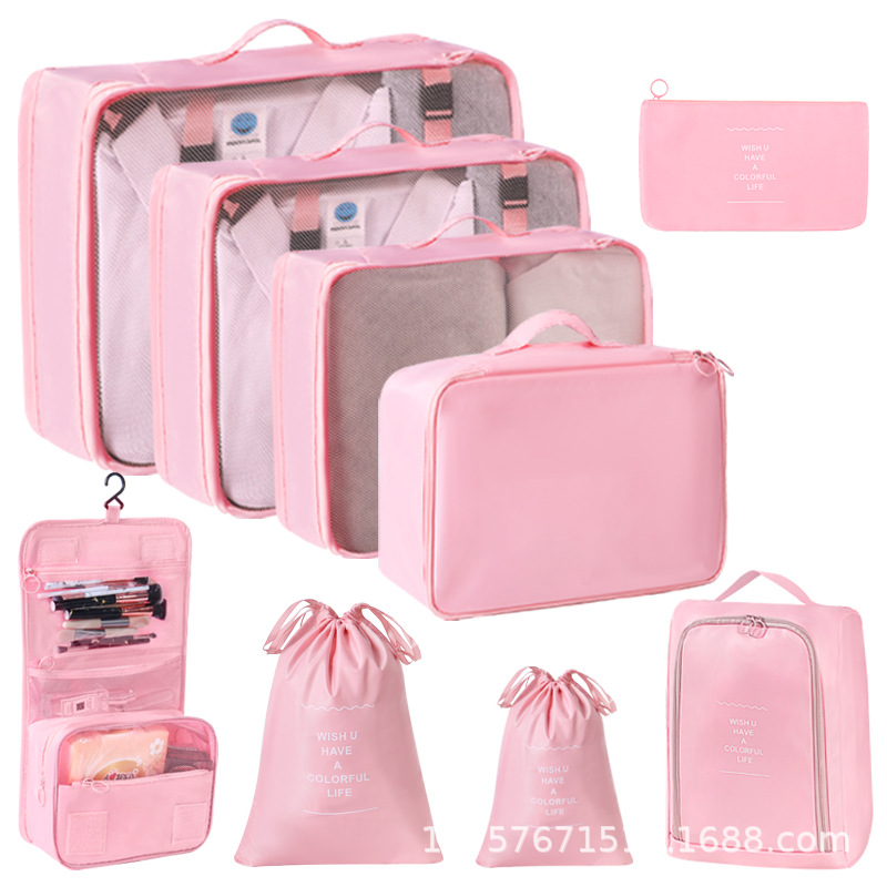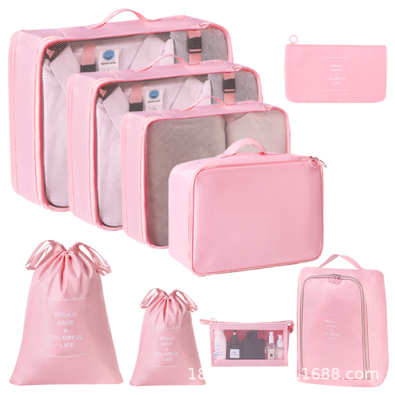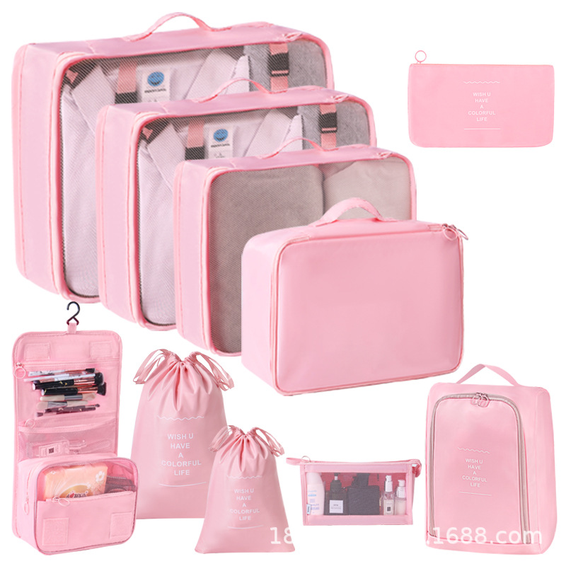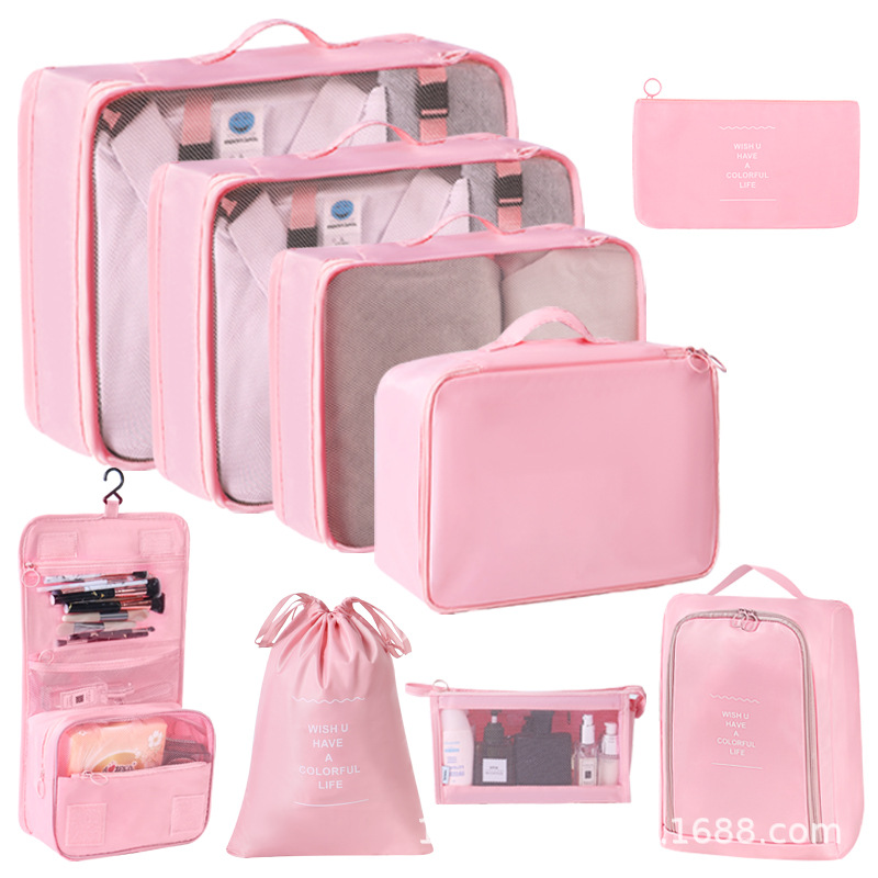 • 핑크 여행 보관 가방 9 종 세트 [신발 가방 더블 번들 가방 화장품 가방 3 세대]]