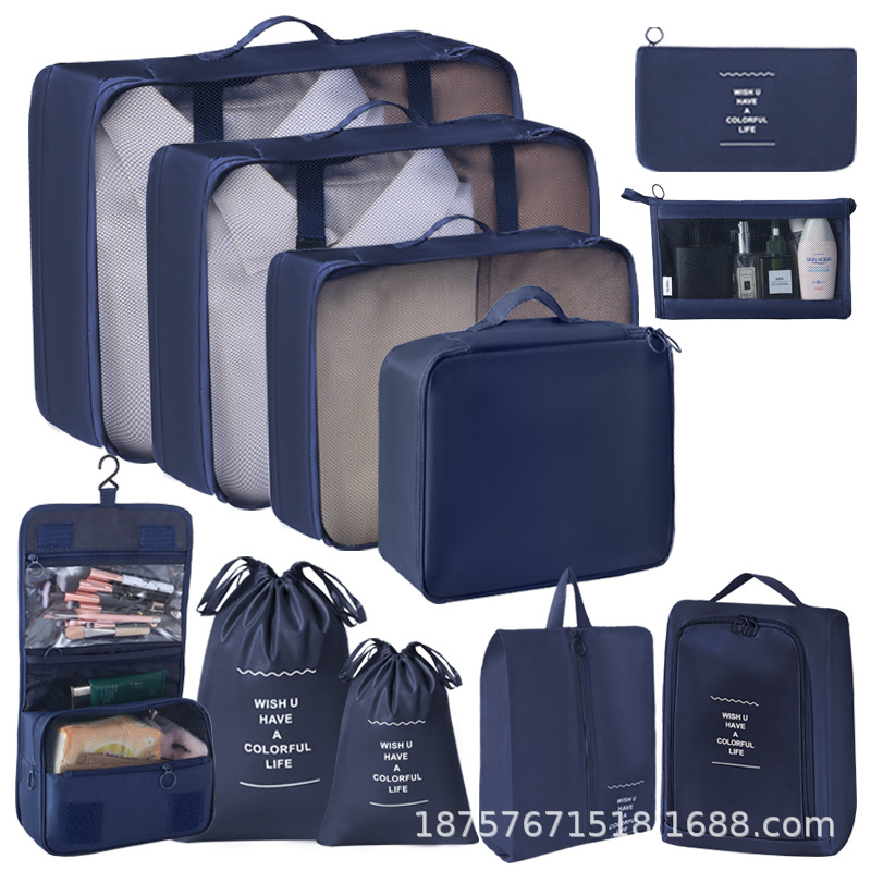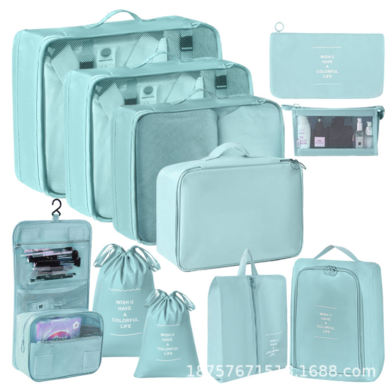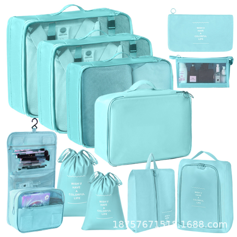 • 밝은 파란색 여행 보관 가방 9 종 세트 [3 세대 신발 더블 번들 백 후크 세탁 가방]]