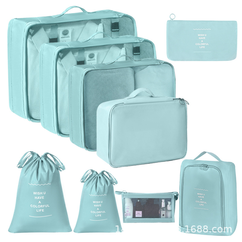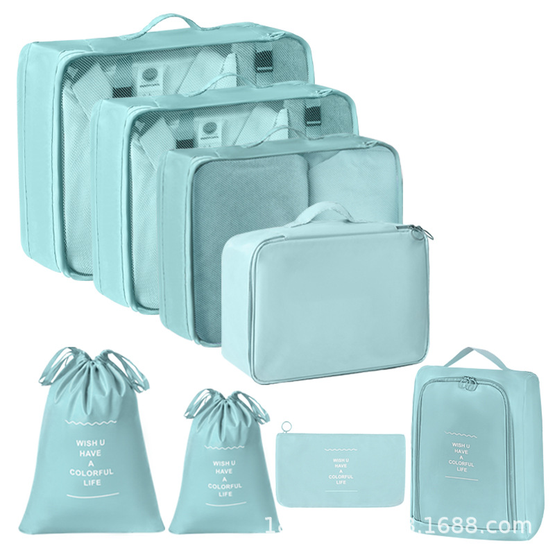 • 밝은 파란색 여행 보관 가방 8 피스 세트 [신발 가방 화장품 가방 3 세대]]