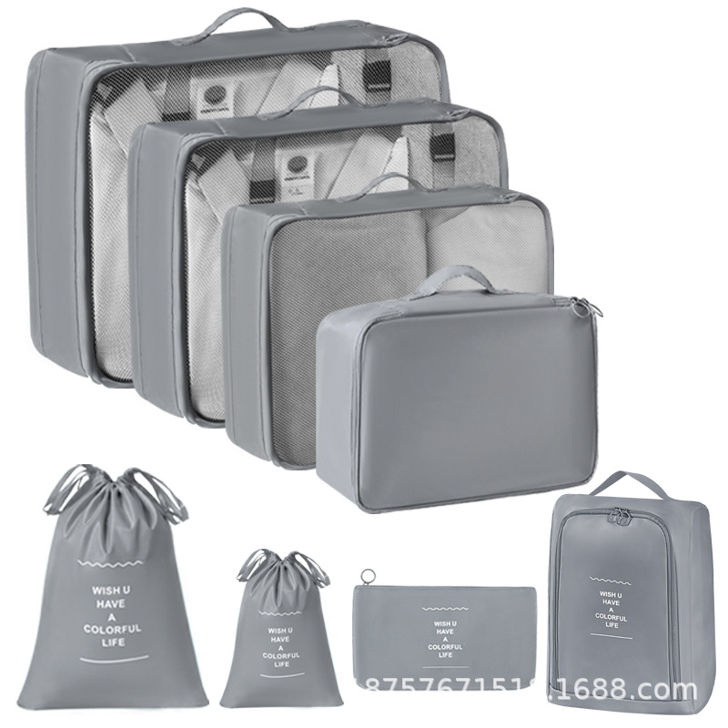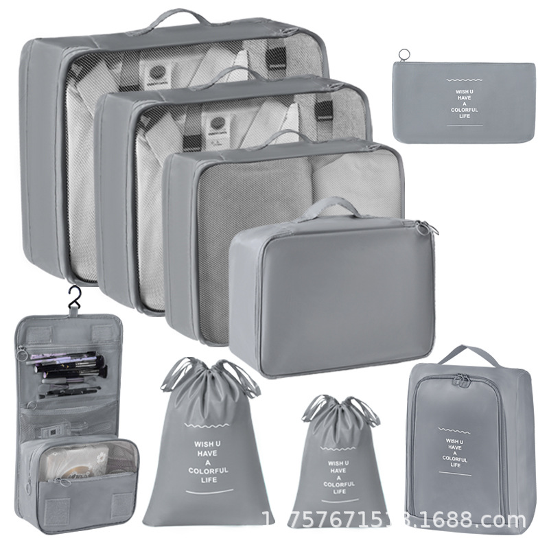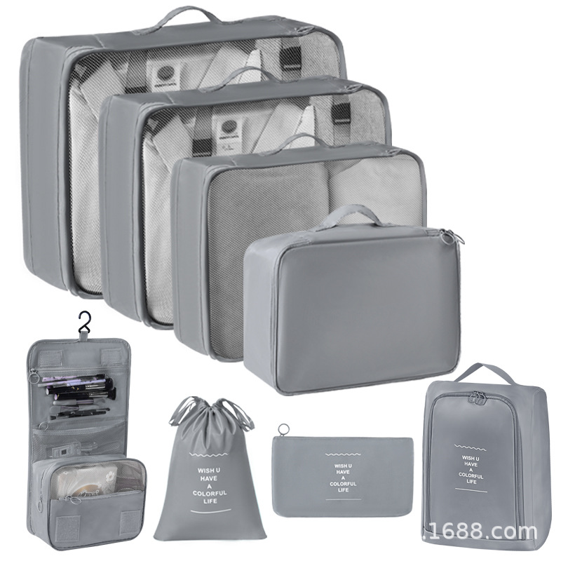 • 회색 여행 보관 가방 9 종 세트 [3 세대 신발 더블 번들 백 후크 세탁 가방]]
