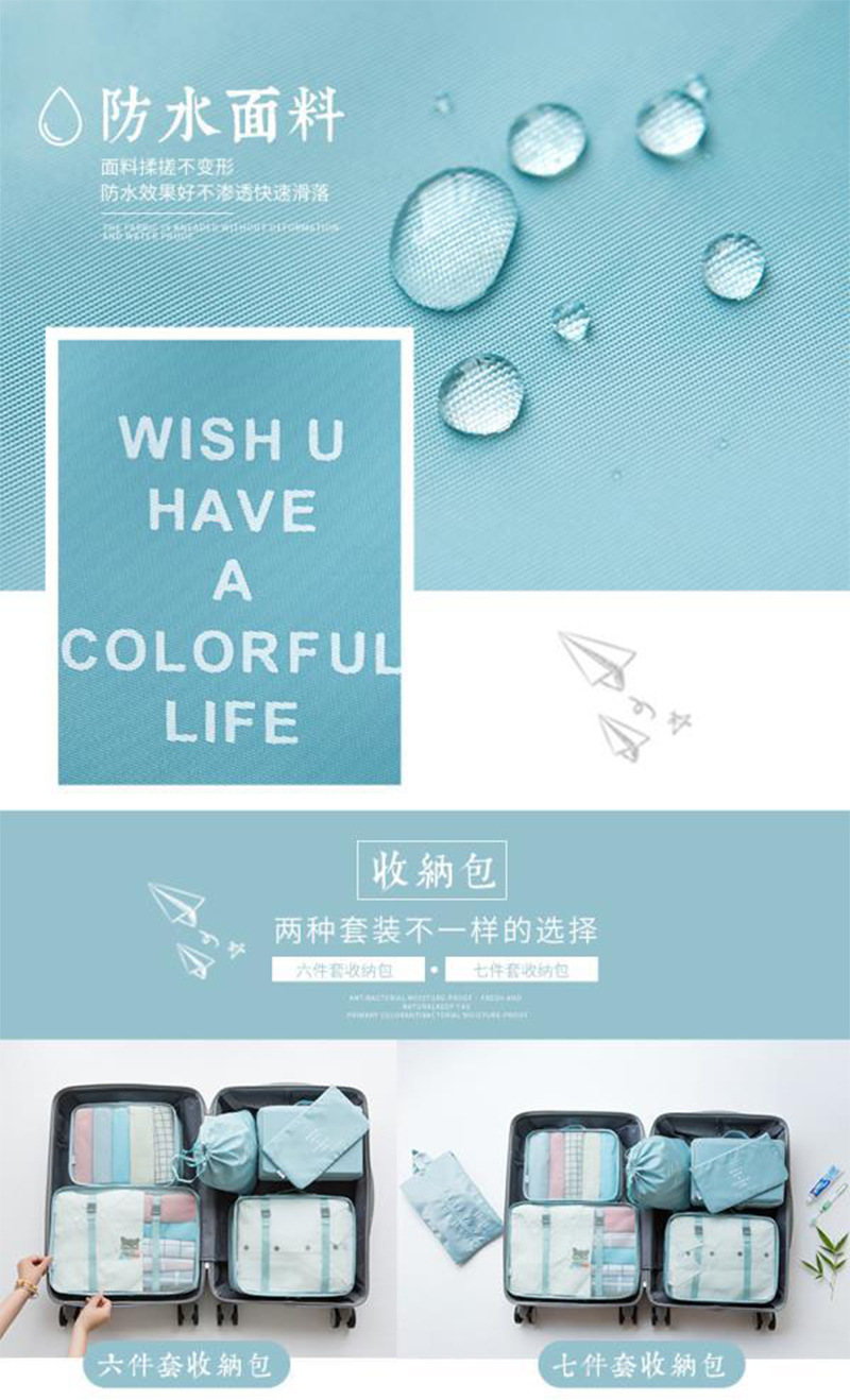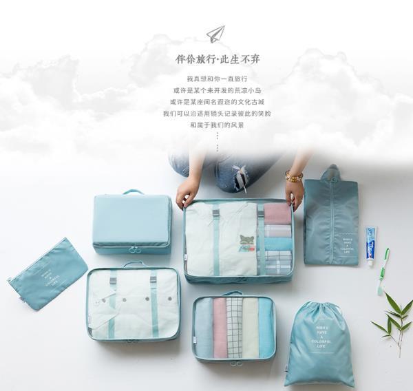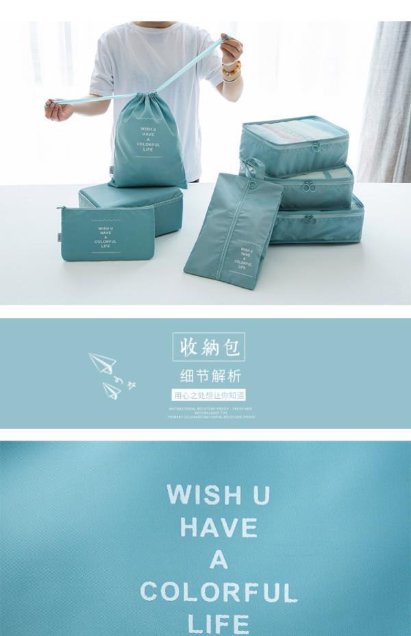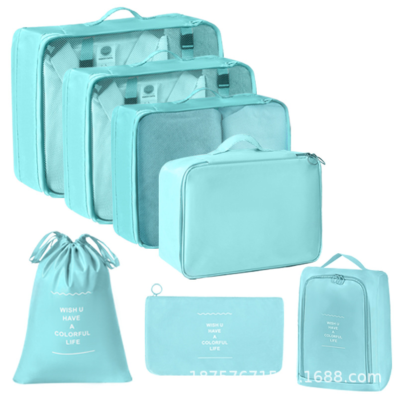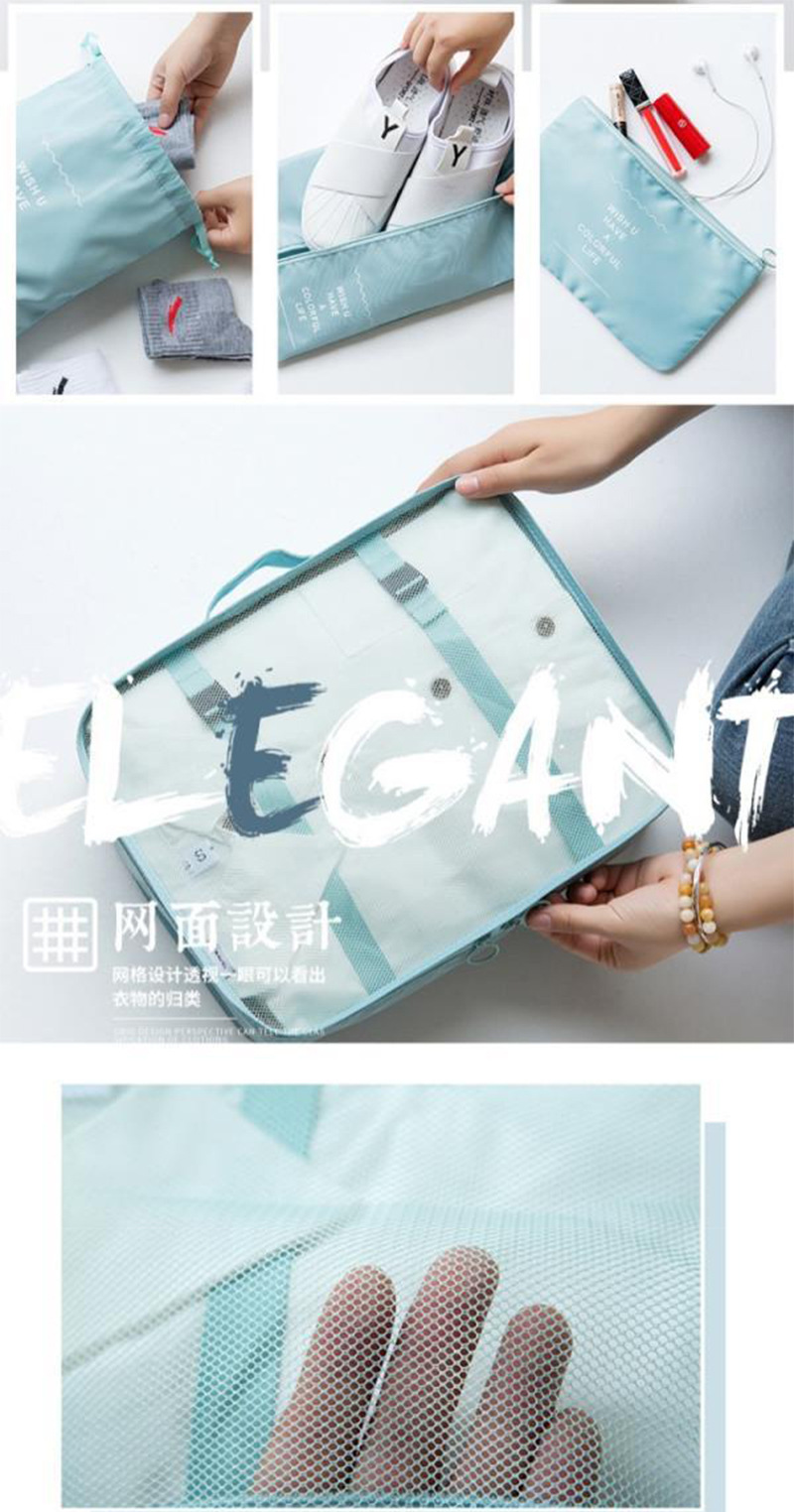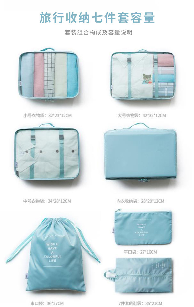 • 밝은 파란색 여행 보관 가방 7 피스 세트 [신발 가방 3 세대]]
