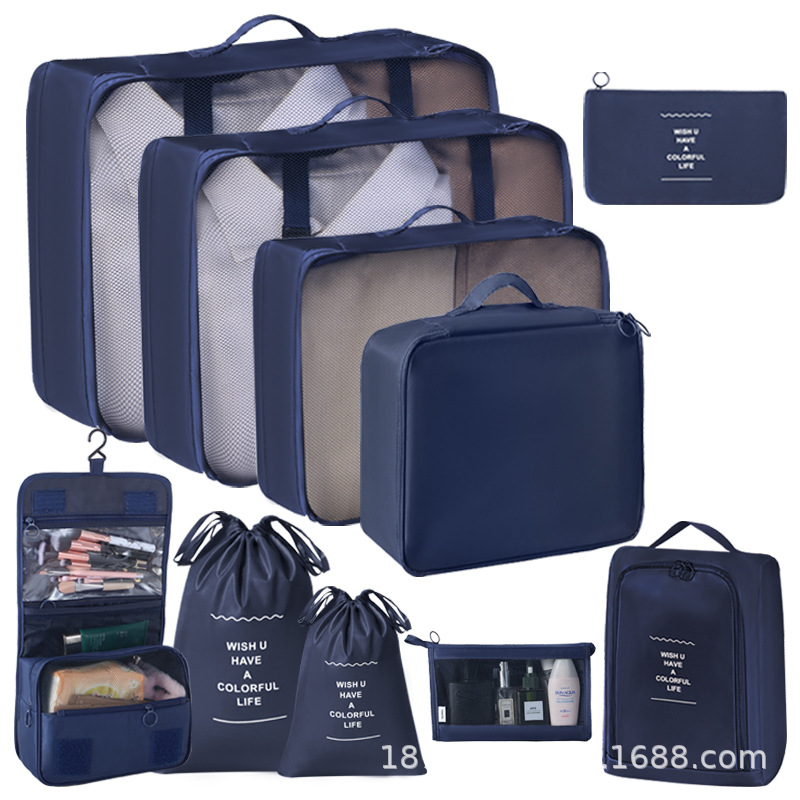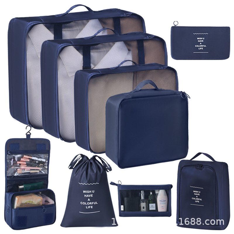 • 네이비 여행 보관 가방 9 종 세트 [신발 가방 더블 번들 백 후크 세면대 3 세대]]