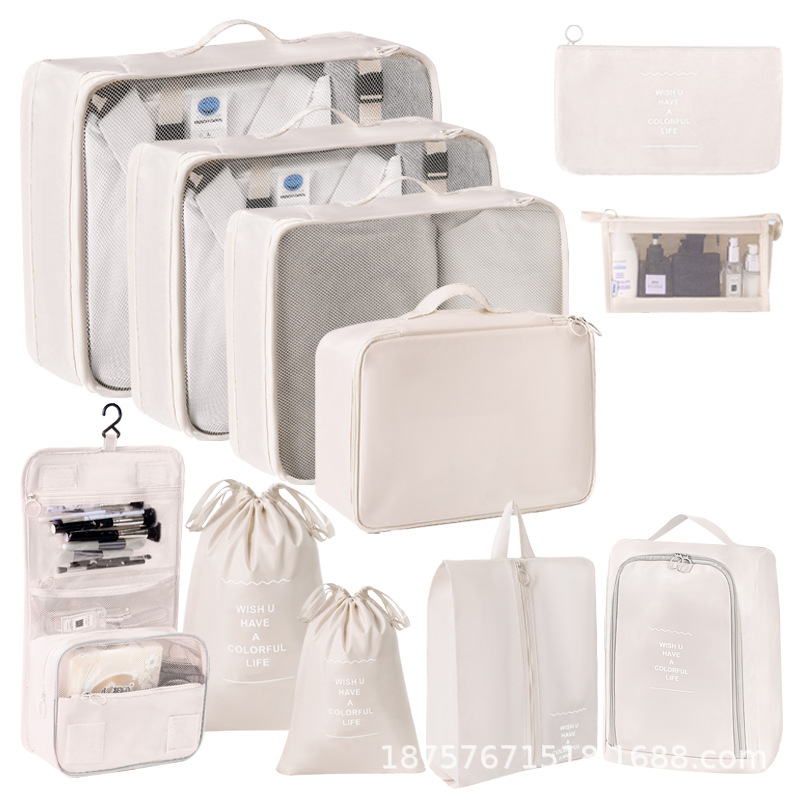 • 베이지 여행 보관 가방 9 종 세트 [신발 더블 번들 백 후크 세면대 3 세대]]