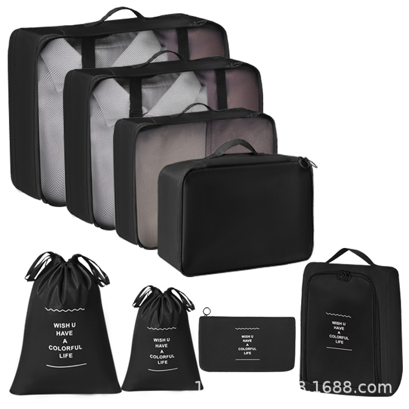 • 검은 여행 보관 가방 8 피스 세트 [신발 가방 더블 번들 가방 3 세대