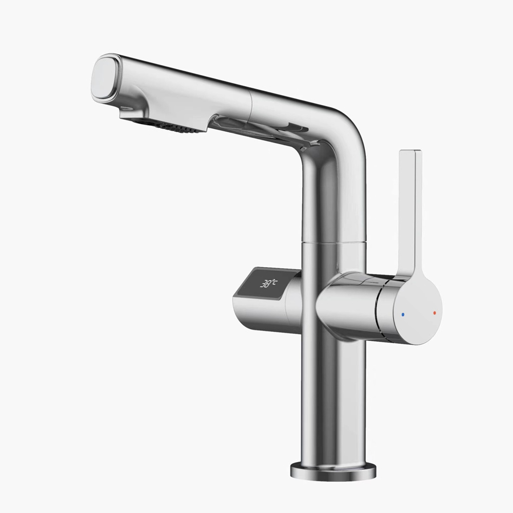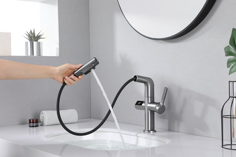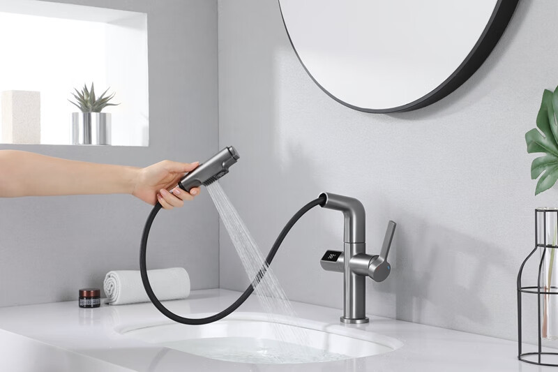 무쿠 풀 동건 그레이 분지 수도꼭지 냉탕 손 씻기 세면기 디지털 디스플레이 싱글 홀 싱글 리프팅 회전스토어 가기