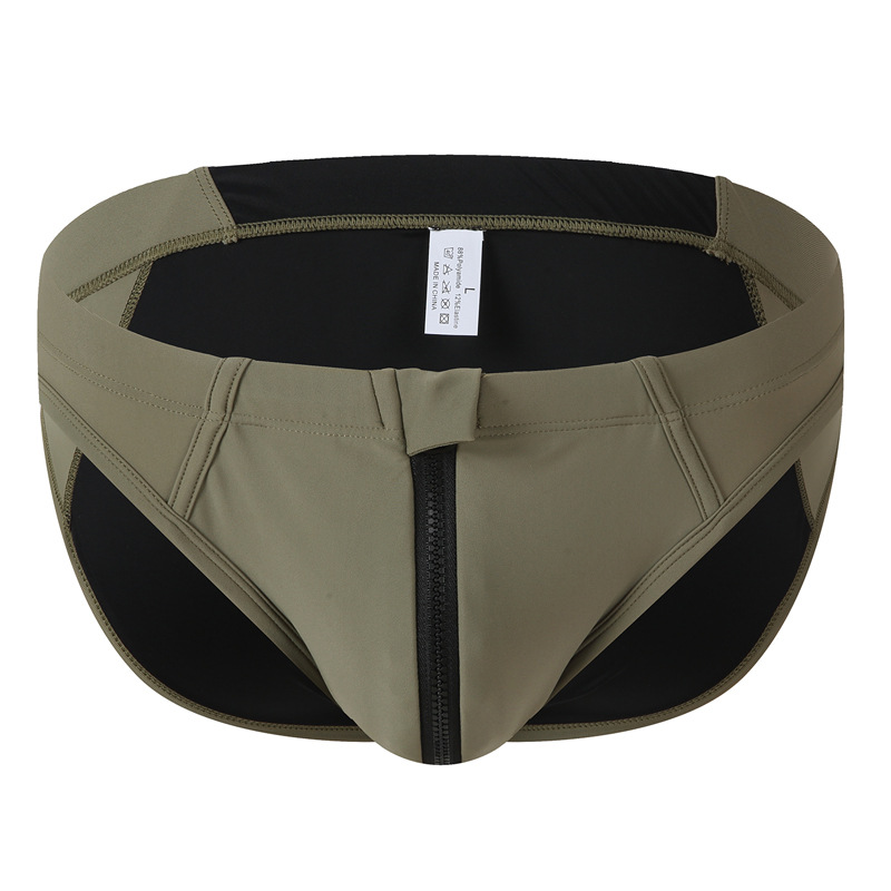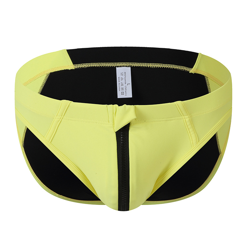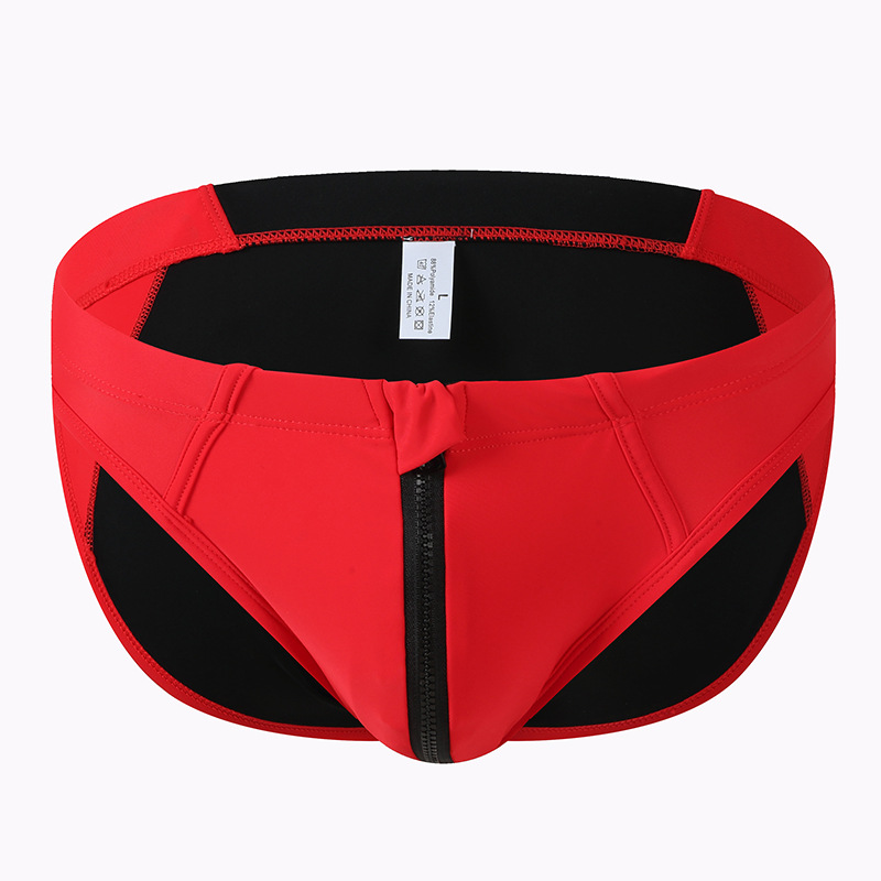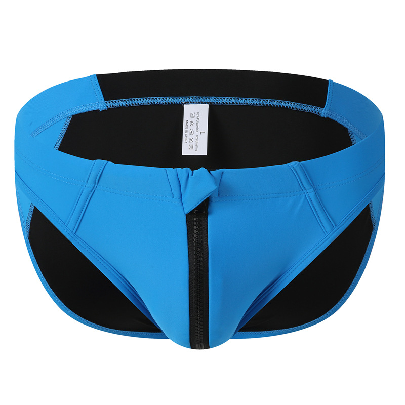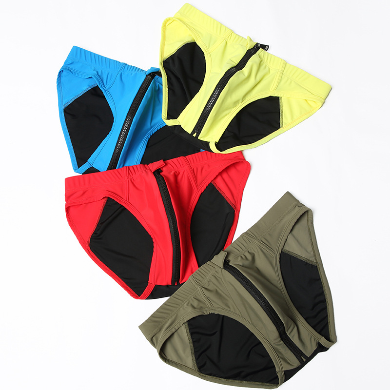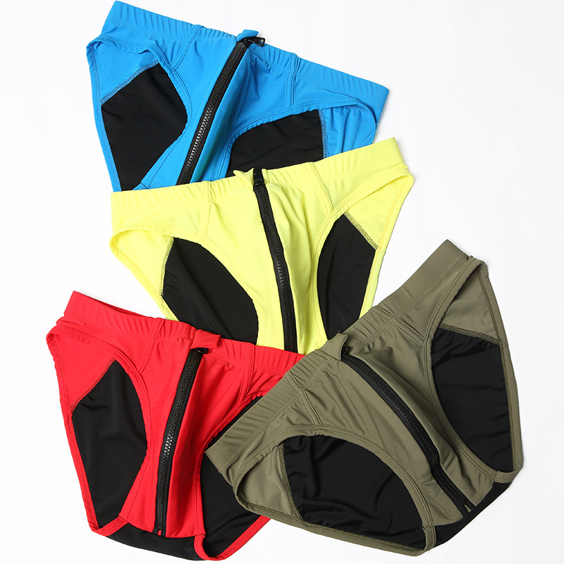 새로운 유럽과 미국 남자 수영 트렁크 전면 개방 지퍼 섹시 컬러 매칭 국경 삼각형 해변 대외 무역 도매