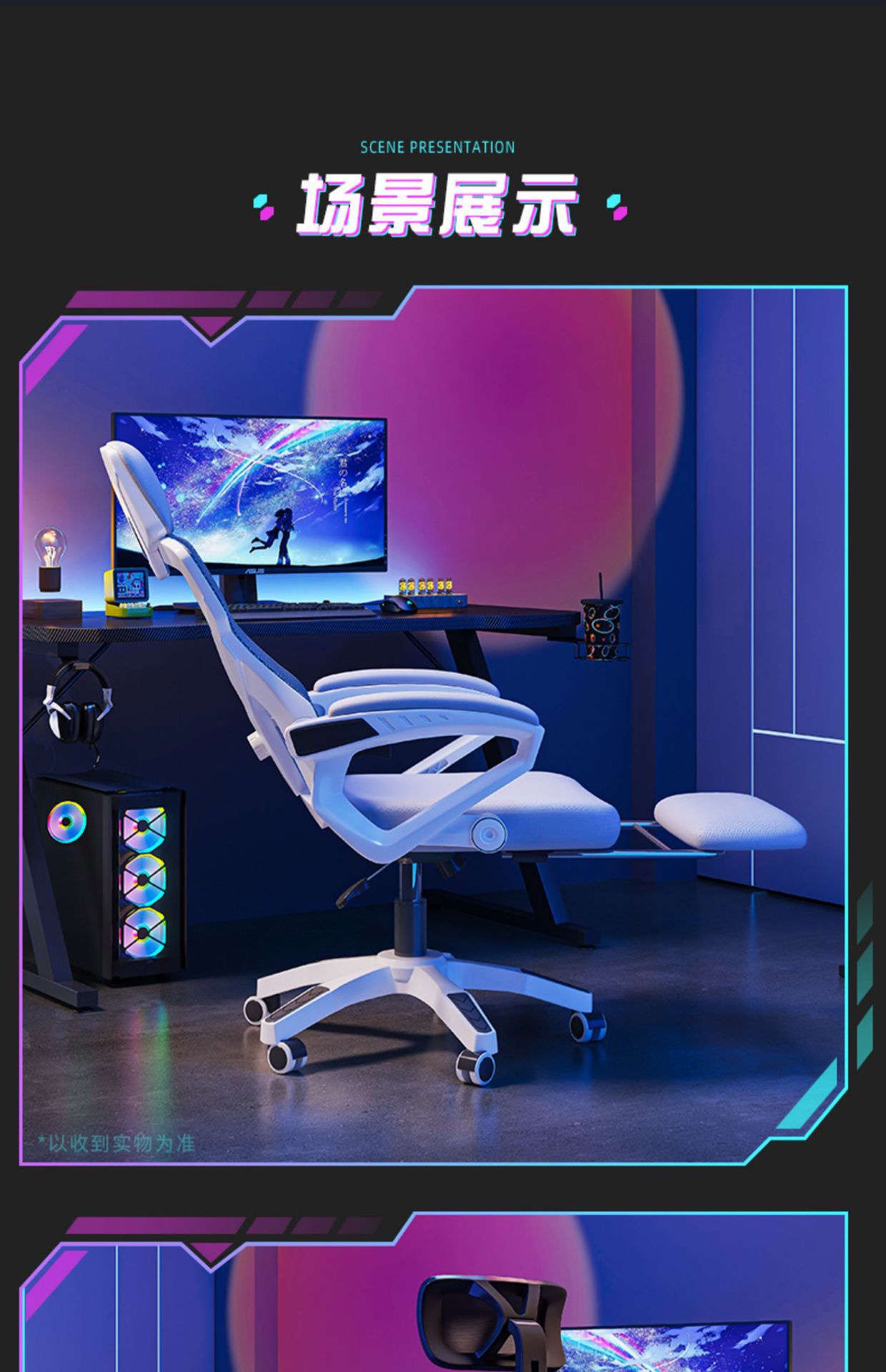 • [누울 수 있음 + 허리 지지대를 위아래로 조절할 수 있음] 화이트 프레임 블랙 네트 3 세대-자유롭고 자유롭게 사용할 수 있음 + 페달 나일론 발