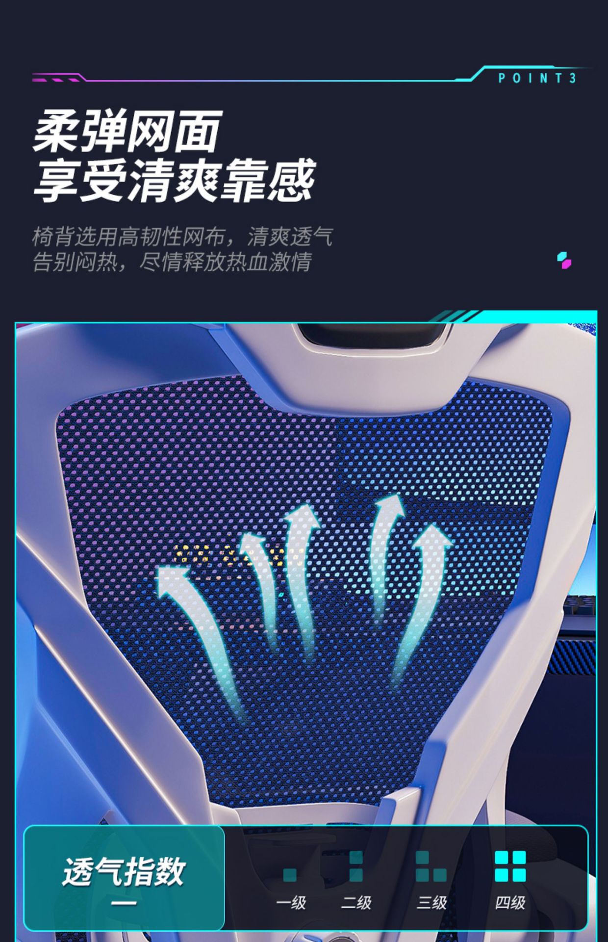 • [기댈 수 있음 + 허리 지지대 전후 조절 가능] 3 세대 화이트 프레임 블랙 그물-나일론 피트 없음