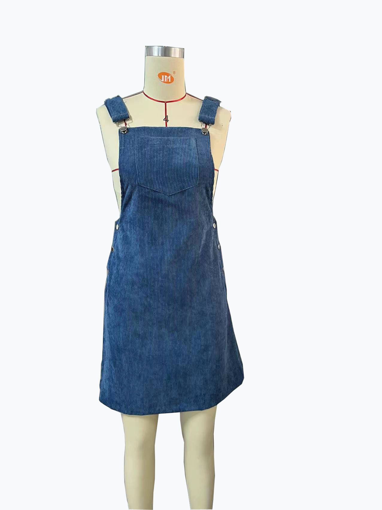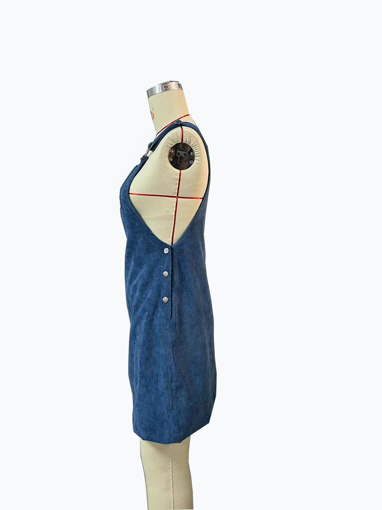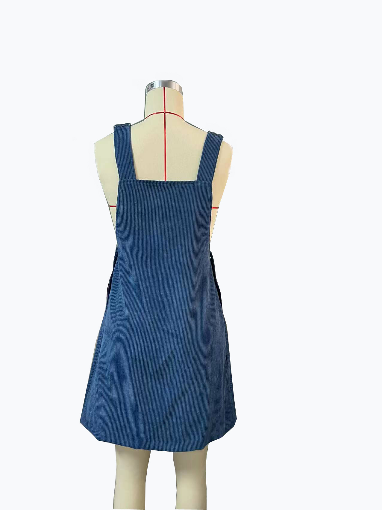 2023 유럽과 미국의 새로운 아마존 봄 코듀로이 느슨한 민소매 서스펜더 원피스 솔리드 컬러 슬립 원피스