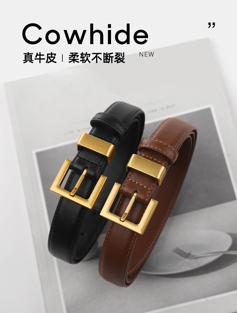공장 다이렉트 벨트 여성용 고급 소프트 패션 조커 가죽 핀 버클 블랙 와이드 벨트 장식 청바지