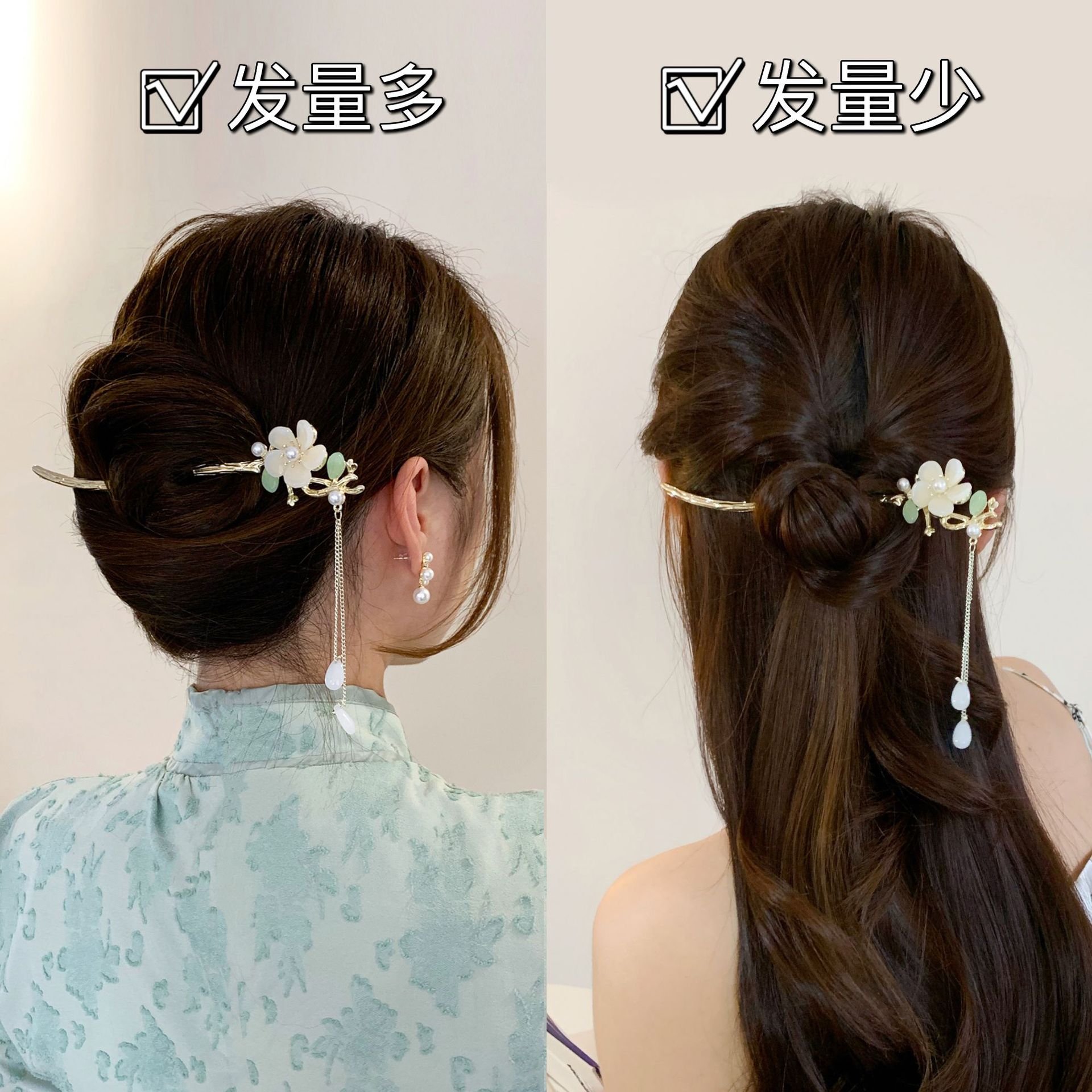 절묘한 목련 꽃 술 머리핀 간단한 현대 디스크 헤어 쉐이크 머리핀 여성용 골동품 치파오 한푸 액세서리 페어리 스타일