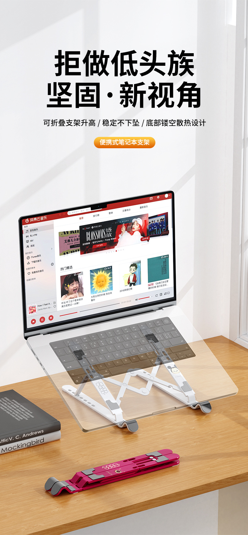 노트북 스탠드 딸기 곰 리프팅 조정 가능한 데스크탑 랙 휴대용 접이식 브래킷 플랫 패널스토어 가기