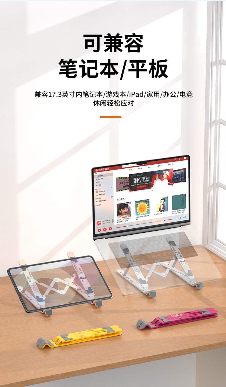 노트북 스탠드 딸기 곰 리프팅 조정 가능한 데스크탑 랙 휴대용 접이식 브래킷 플랫 패널