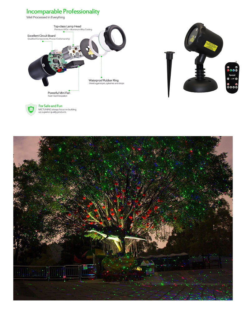 현실적인 반딧불 잔디 램프, 정원 프로젝션 램프, 레이저 램프, 조명 공원 안뜰 분위기 장식, 별이 빛나는 하늘