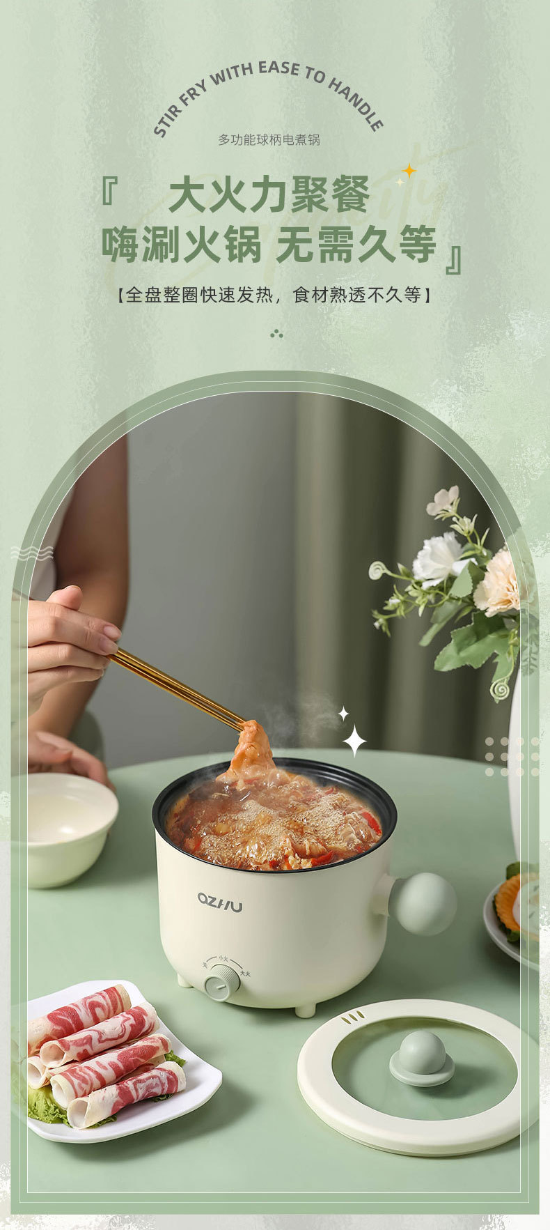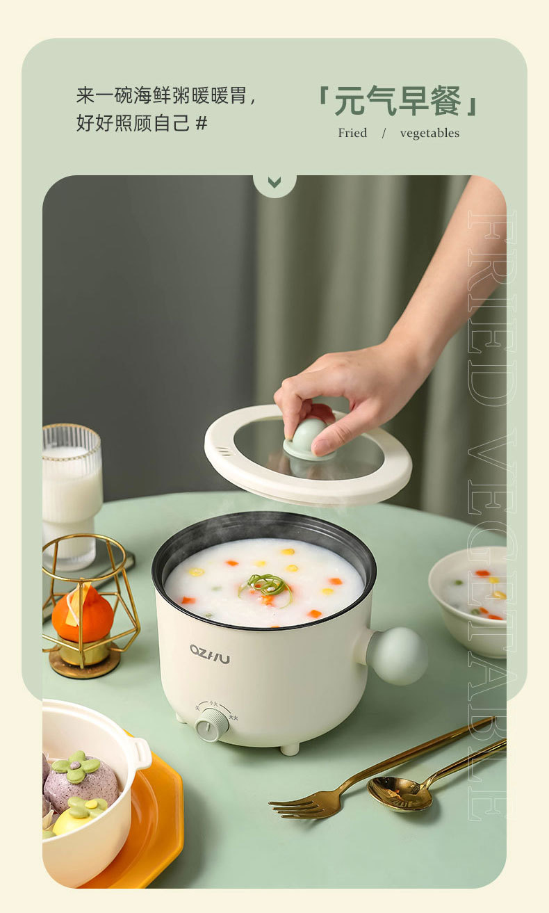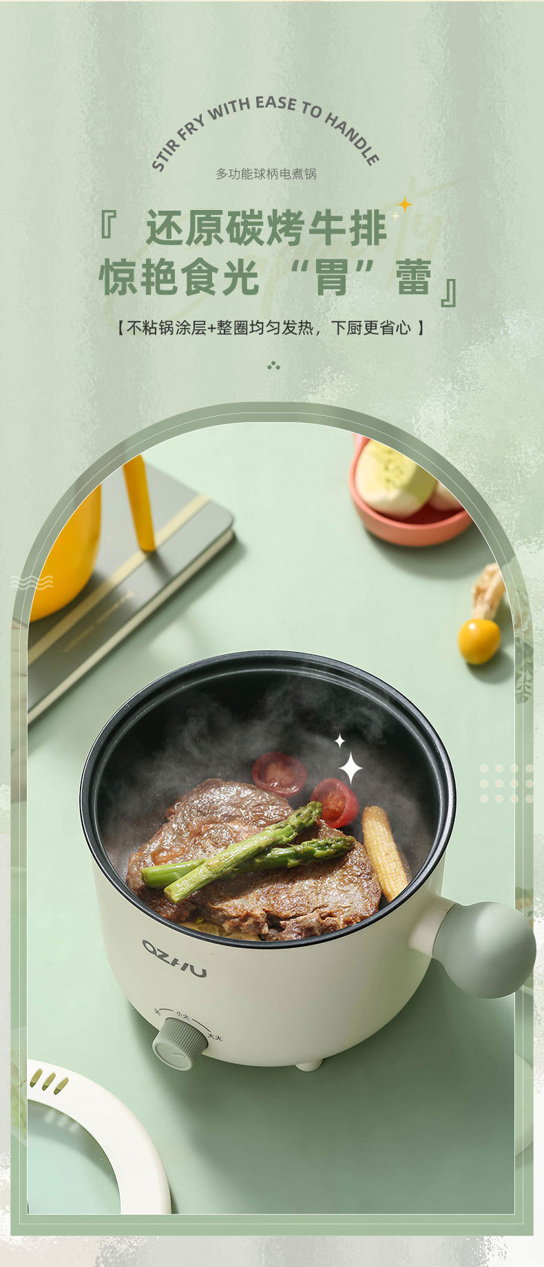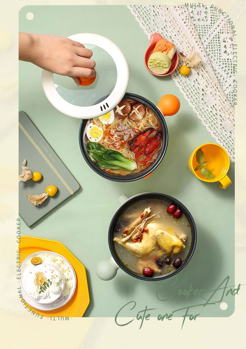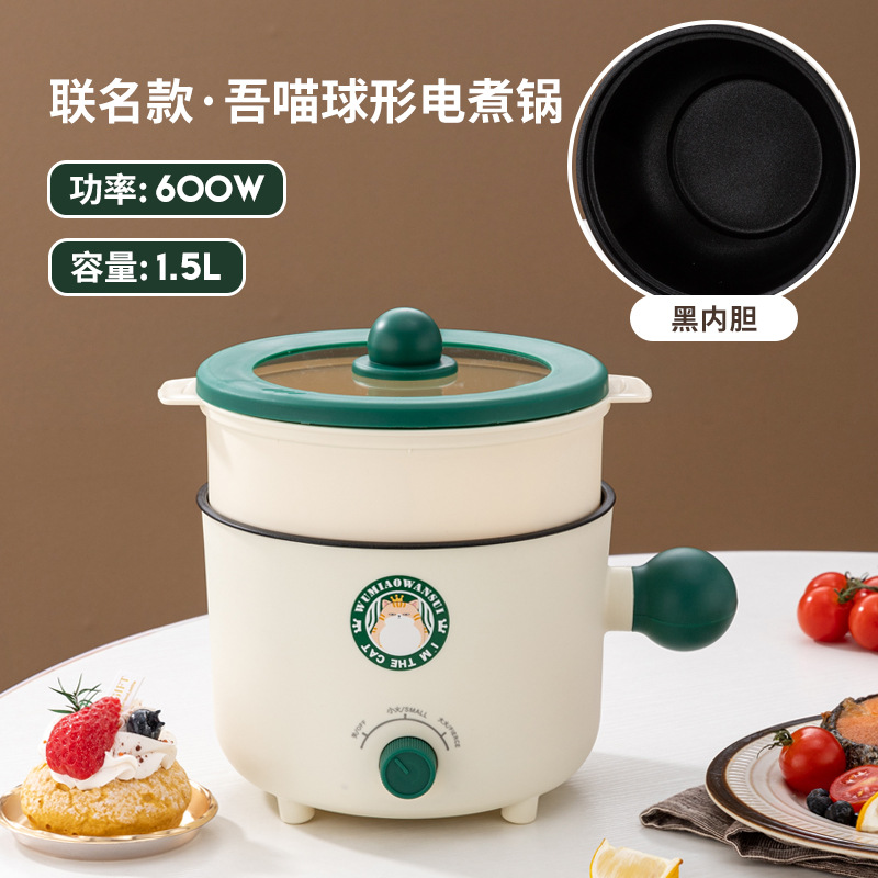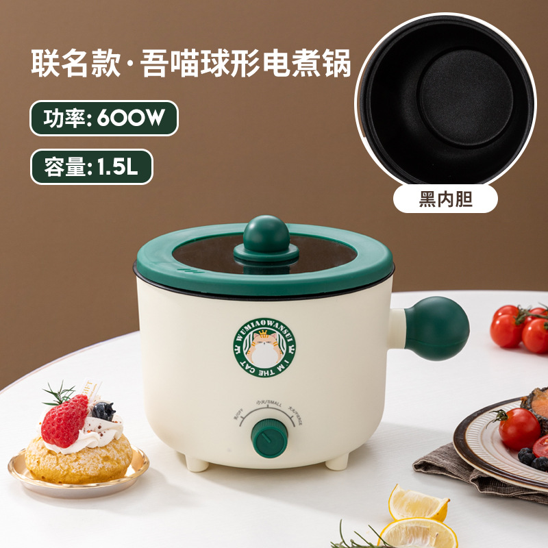 粤尔德直供 球形电煮锅可拆卸把手一人食煮面电锅小型泡面煮锅