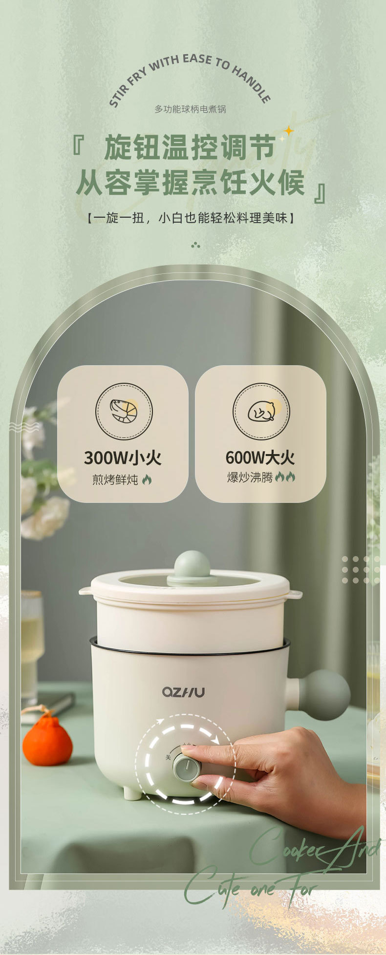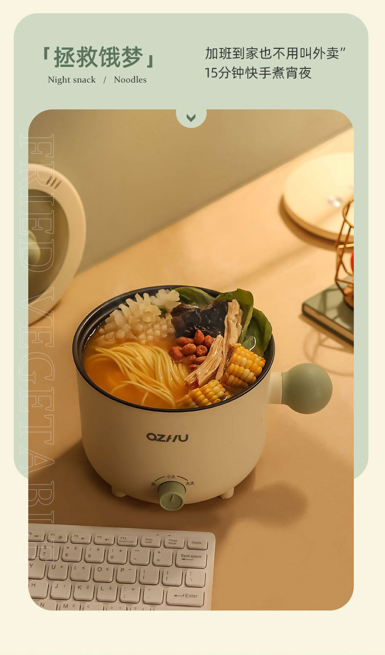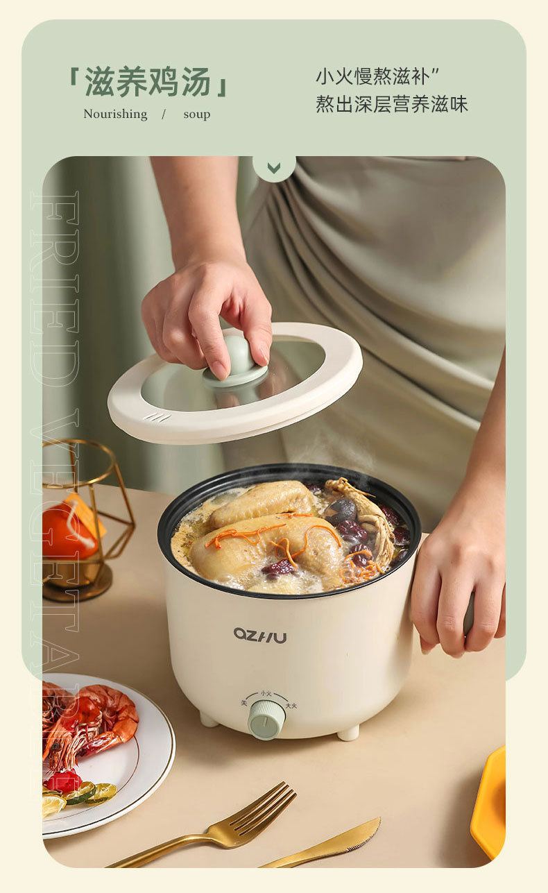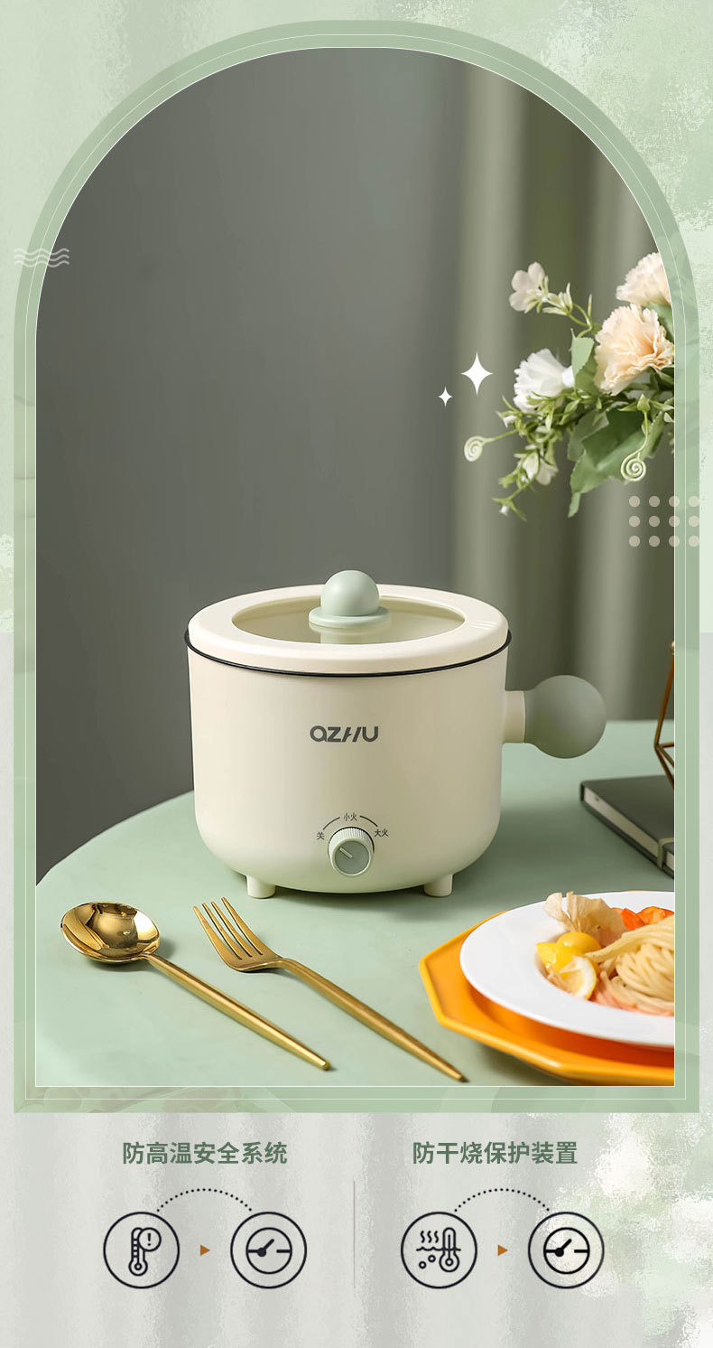 粤尔德直供 球形电煮锅可拆卸把手一人食煮面电锅小型泡面煮锅