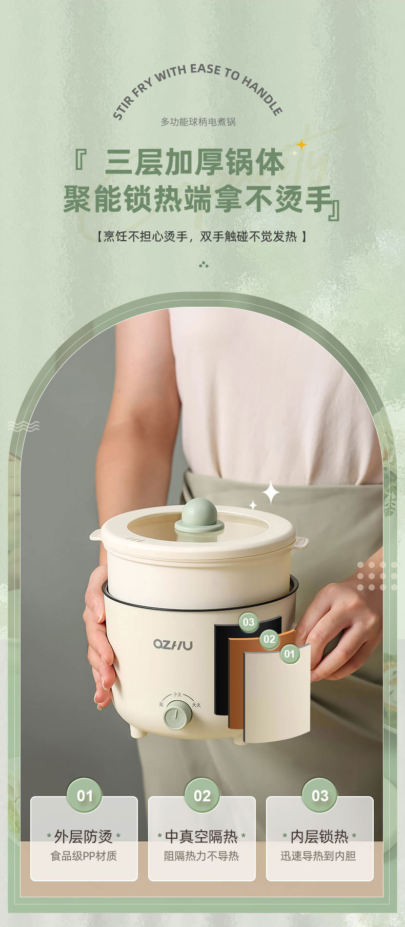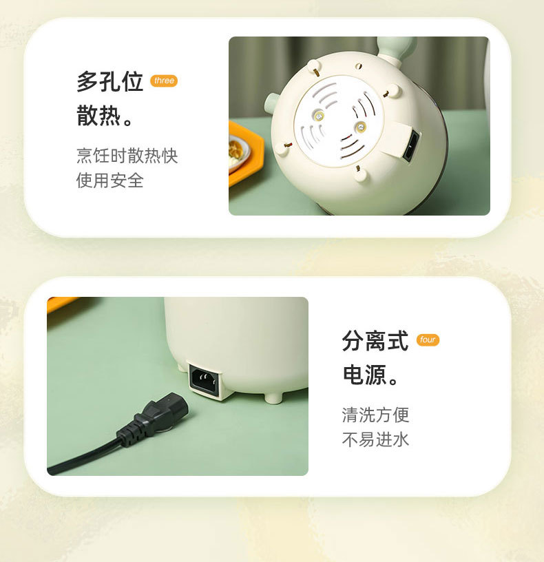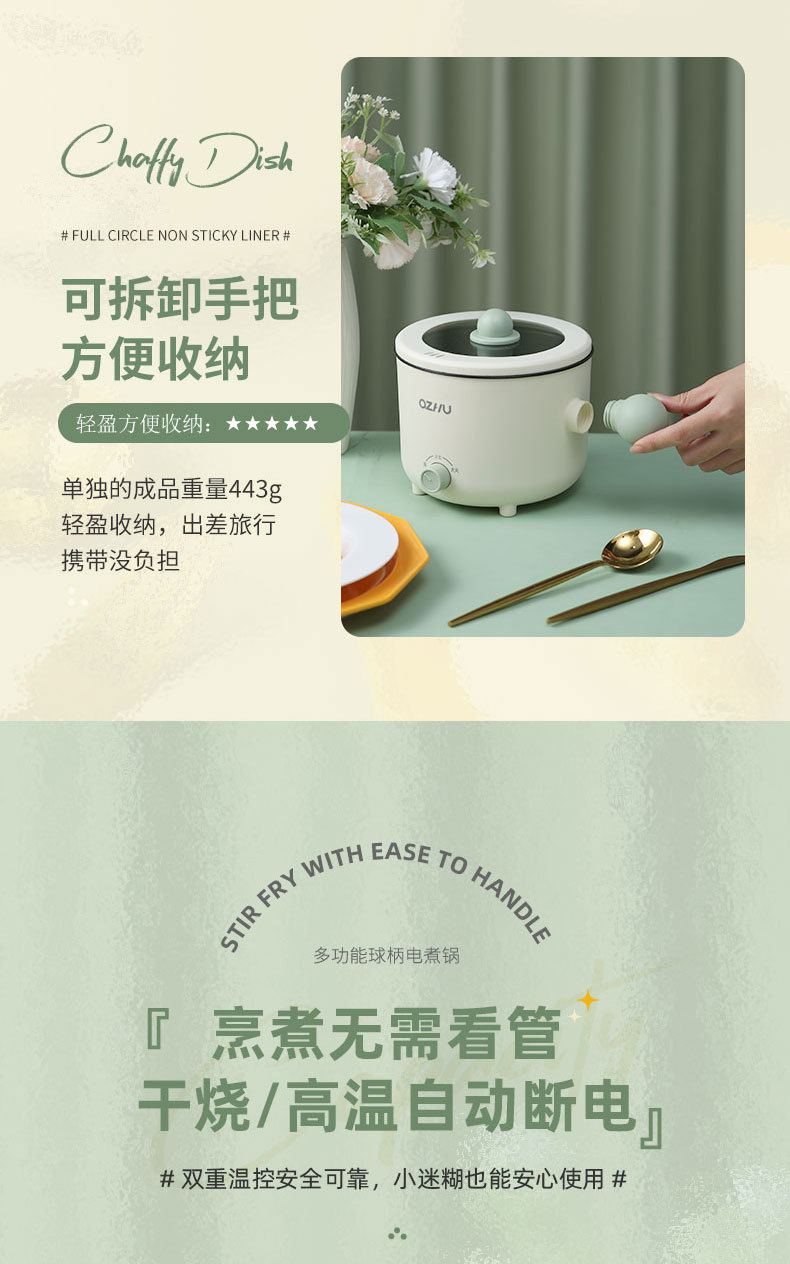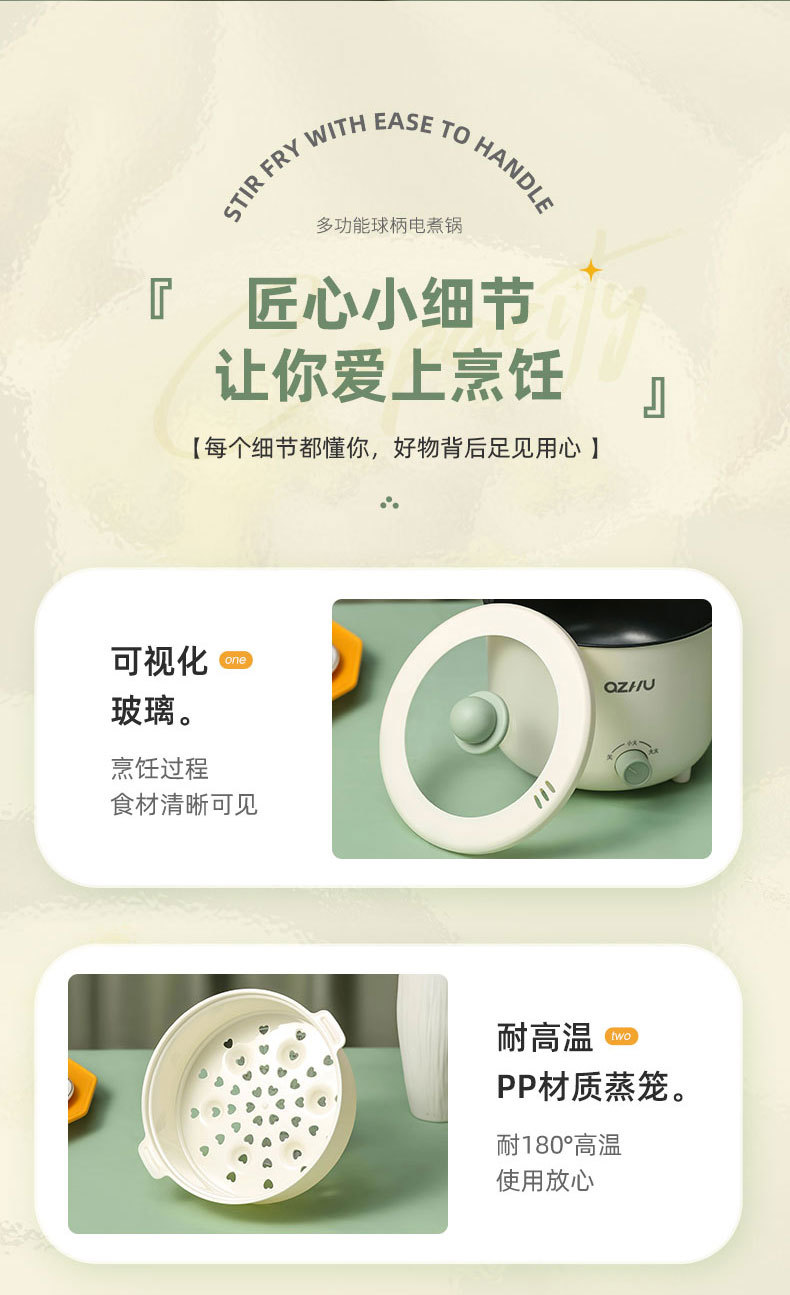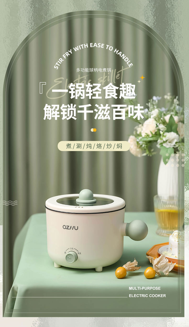 粤尔德直供 球形电煮锅可拆卸把手一人食煮面电锅小型泡面煮锅