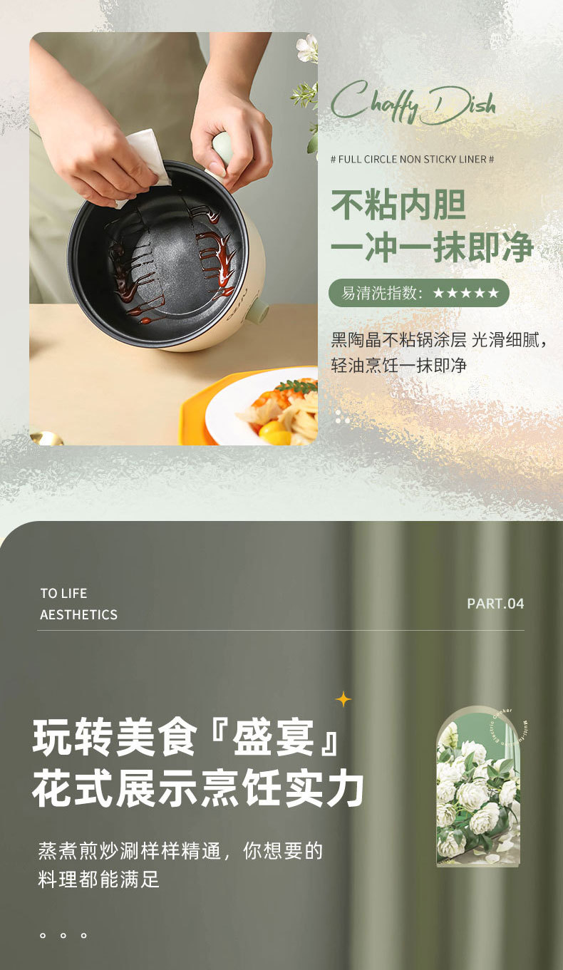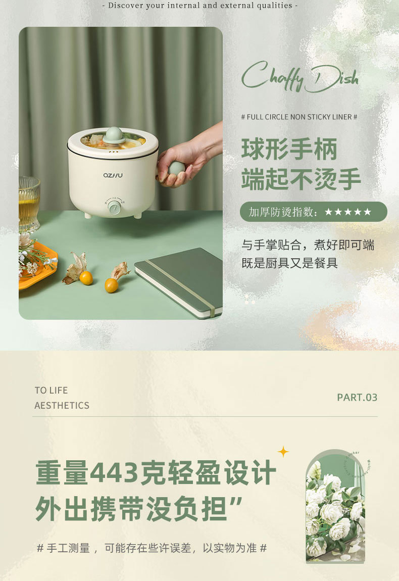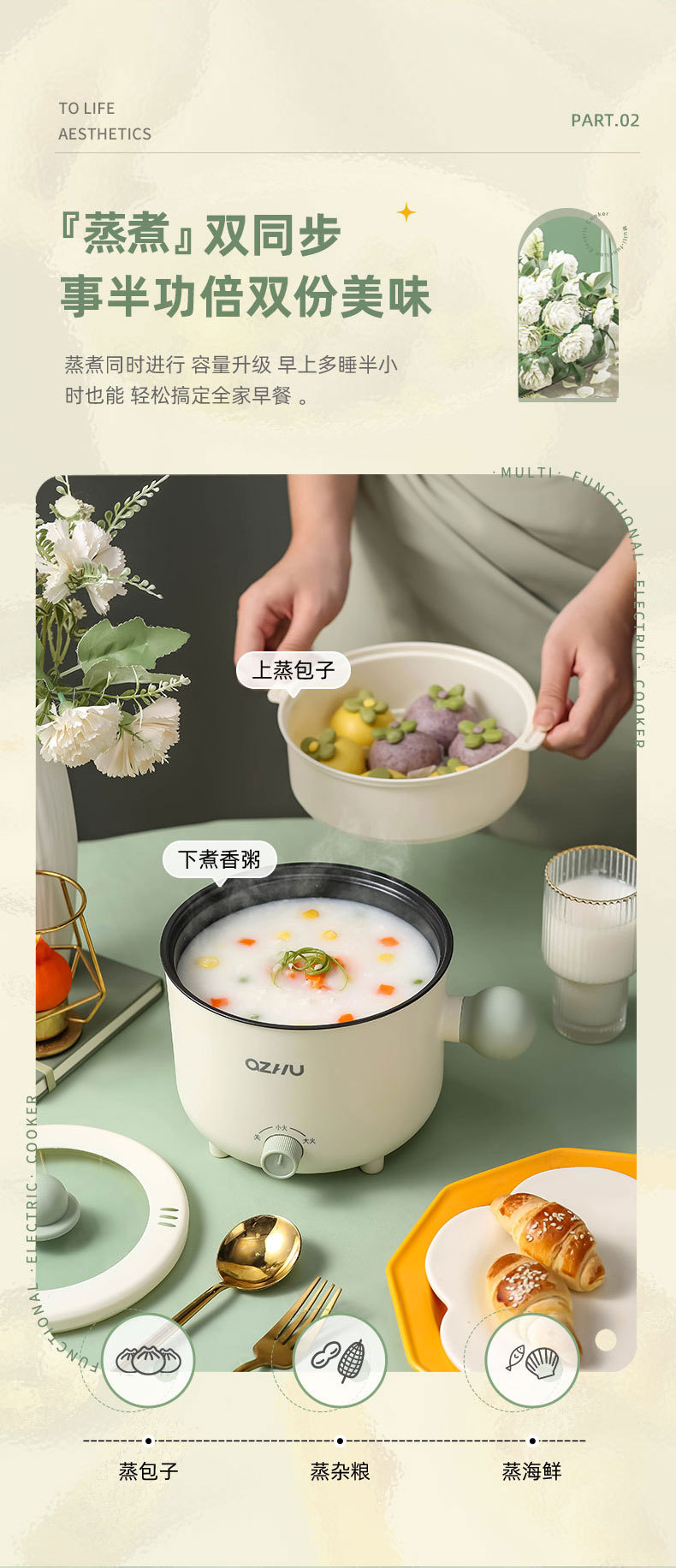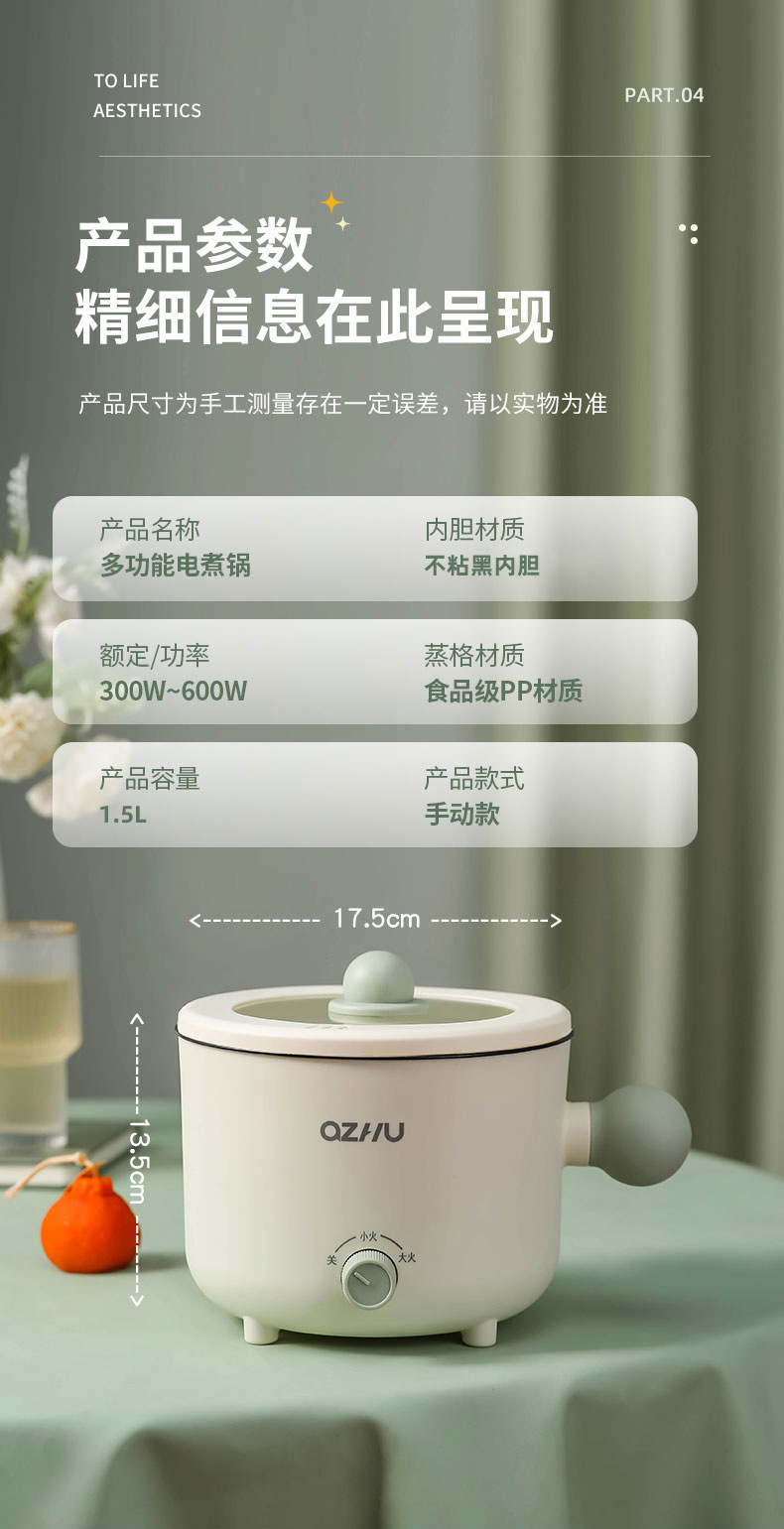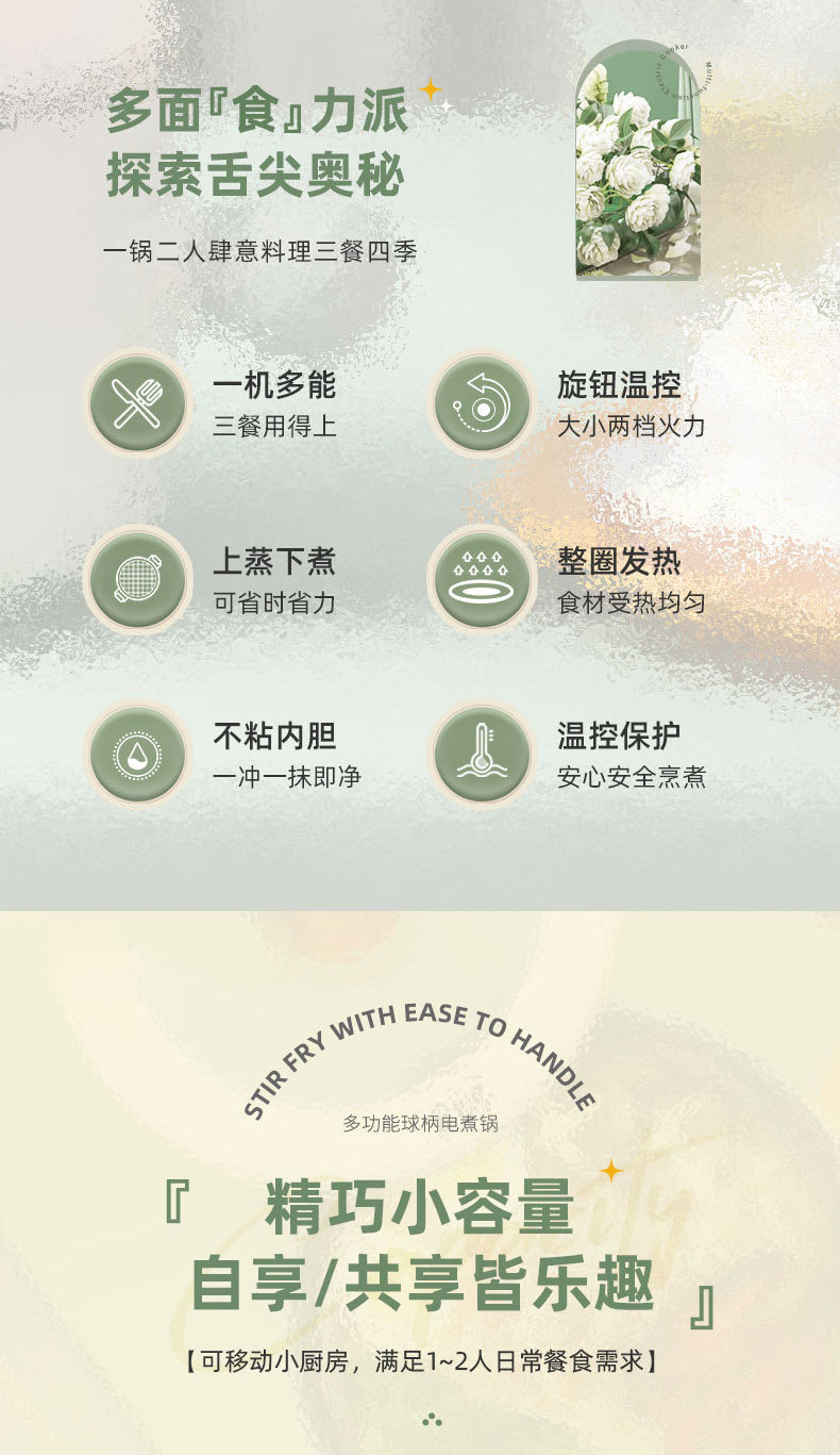 粤尔德直供 球形电煮锅可拆卸把手一人食煮面电锅小型泡面煮锅