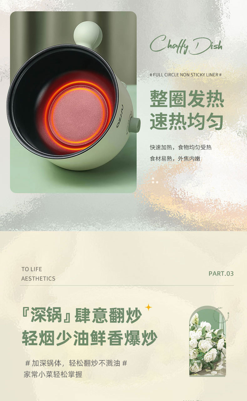 유에르드 직배송 구형 소형 전기냄비 탈부착 손잡이 1인용 국수 조리 전기냄비 다기능 전기냄비