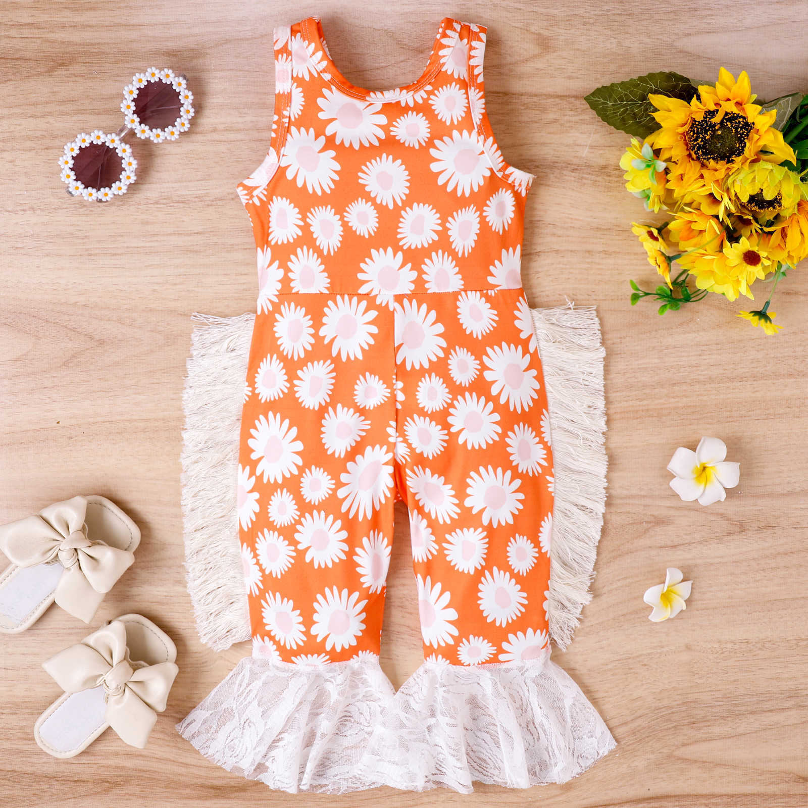 Baoxin 아동복 봄 여름 여성 중소형 어린이 유행 슬링 플라워 프린트 패치 워크 술 레이스 바지