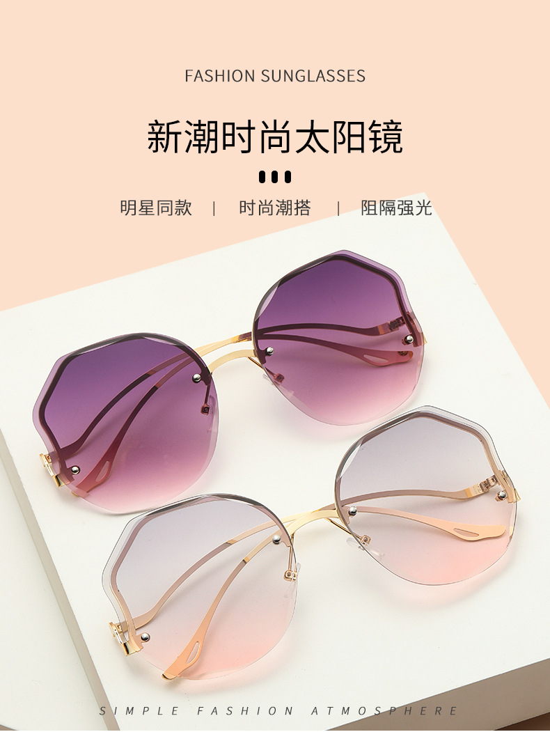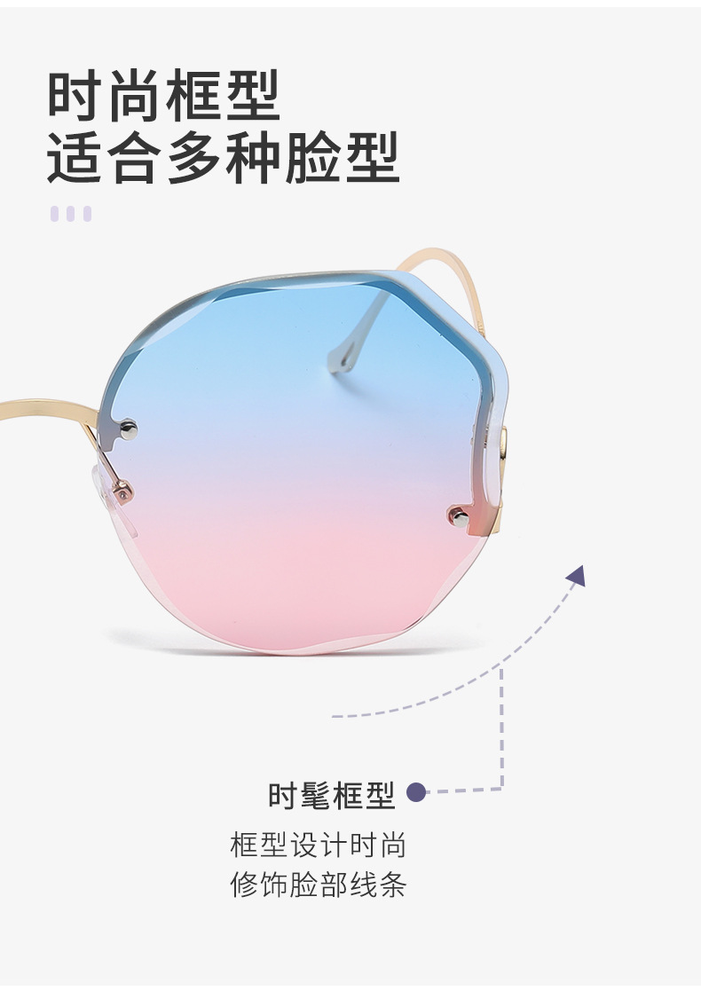 선글라스 도매 여자의 새로운 한국 스타일 유행 트리밍 투명 그라데이션 차 핑크 선글라스 여자의 인터넷 연예인 무테 안경스토어 가기