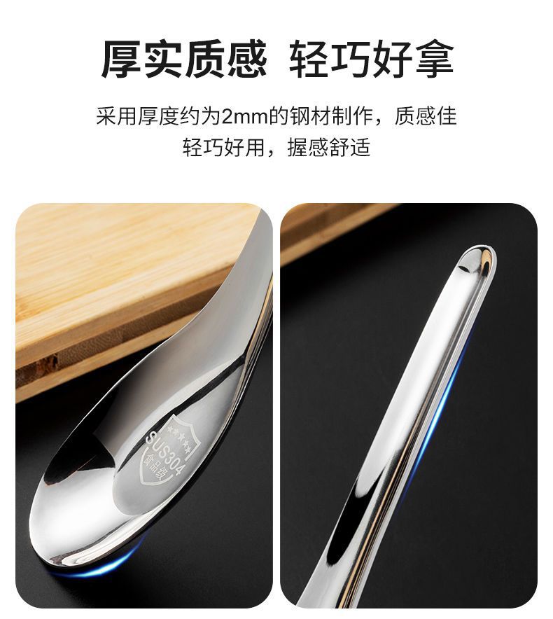 304 스테인레스 스틸 스푼 중국 플랫 바닥 스푼 두꺼운 가정용 성인 어린이 식기 수프 스푼 믹싱 스푼 로고 인쇄스토어 가기