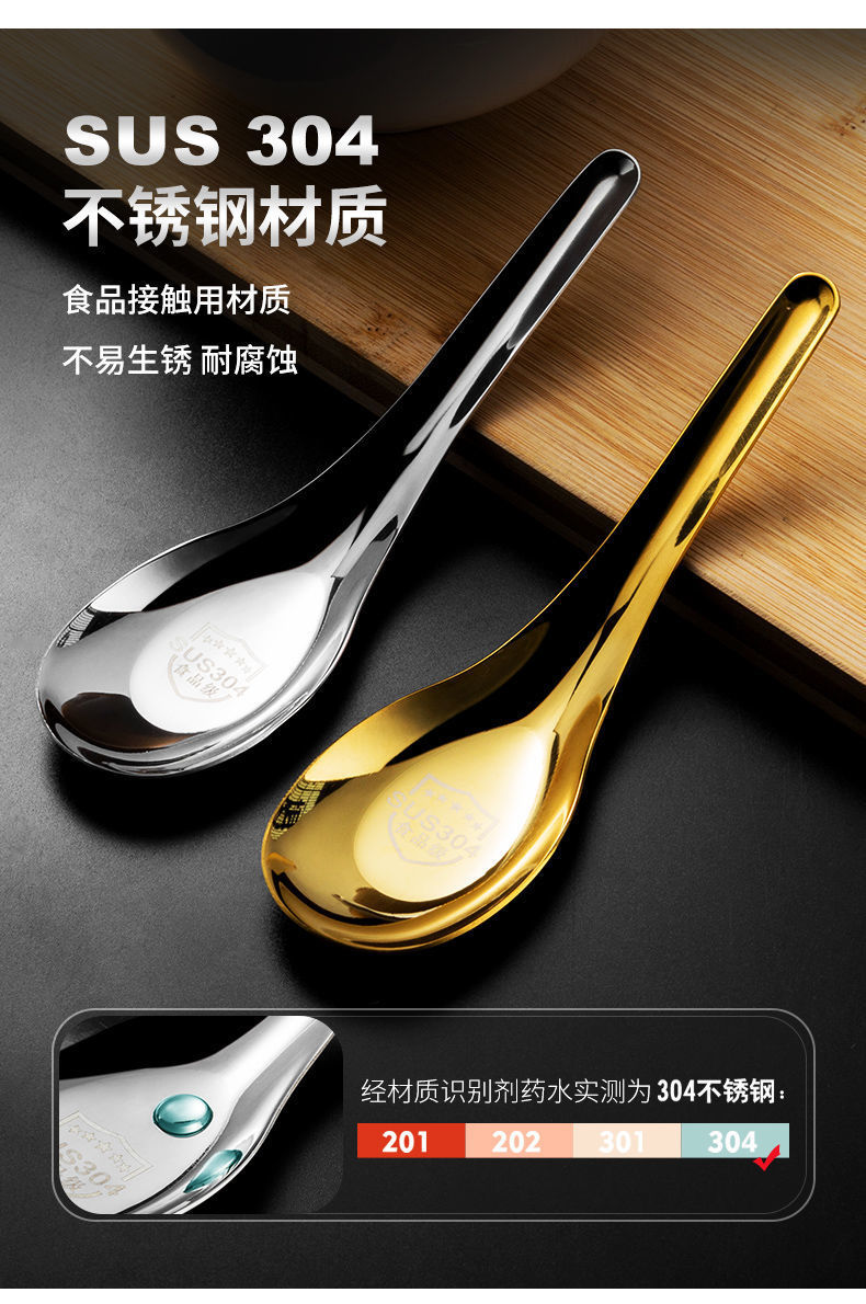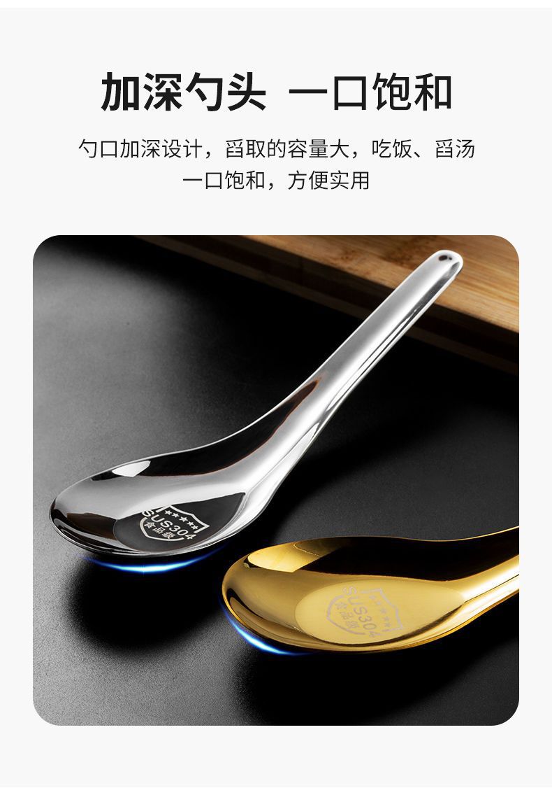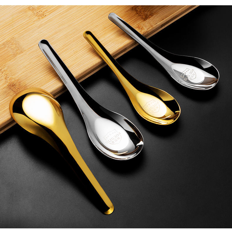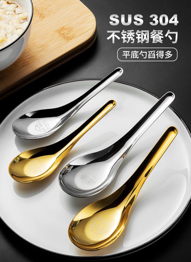 304 스테인레스 스틸 스푼 중국 플랫 바닥 스푼 두꺼운 가정용 성인 어린이 식기 수프 스푼 믹싱 스푼 로고 인쇄