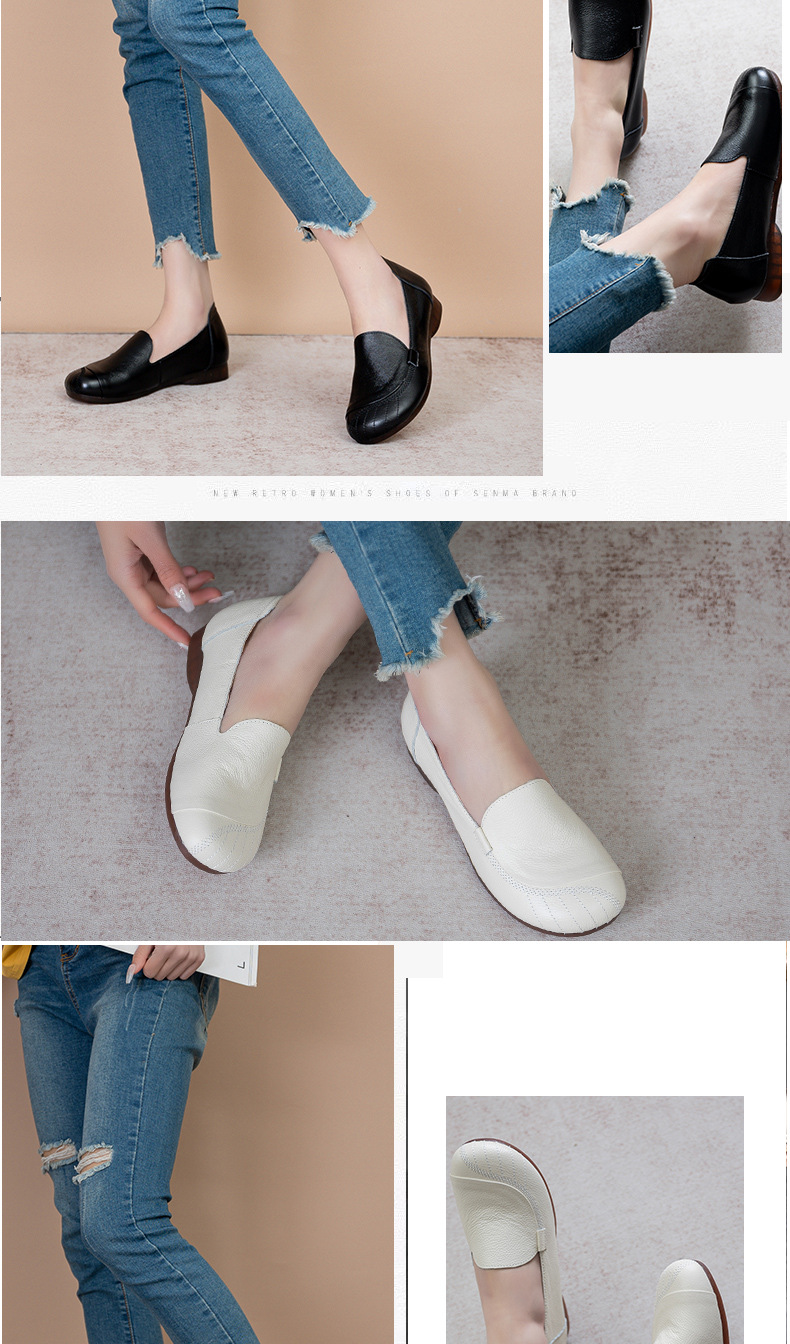 정품 가죽 부드러운 밑창 미끄럼 방지 엄마 신발 단층 신발 여성 신발 Leap Moon 신발 플랫 편안한 중년 및 노인 가죽 신발 봄과 가을