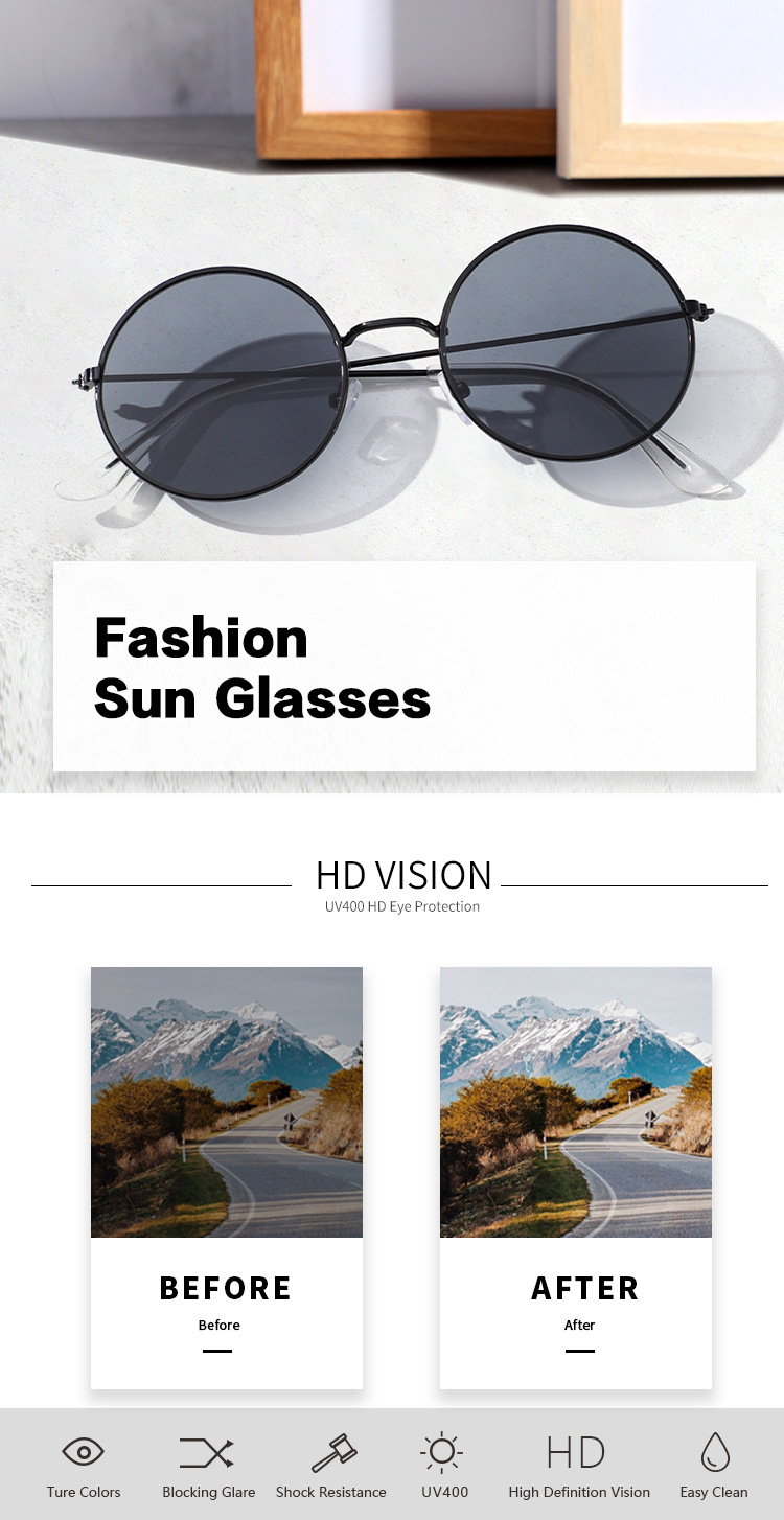 금속 원형 안경 남성용 선글라스 여성용 고급 선 스크린 선글라스 자외선 차단 안경 도매 선글라스스토어 가기