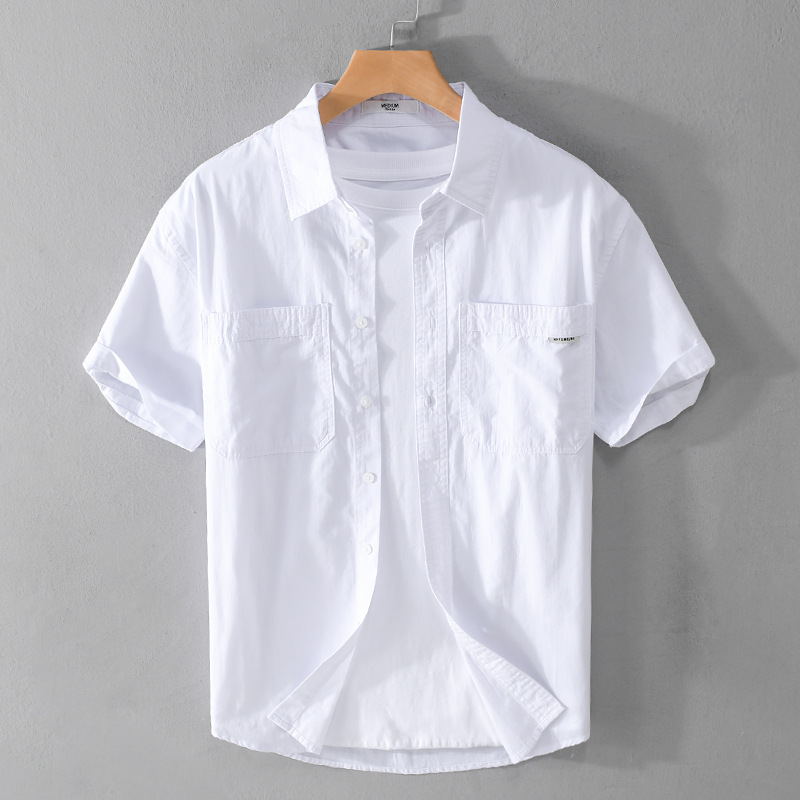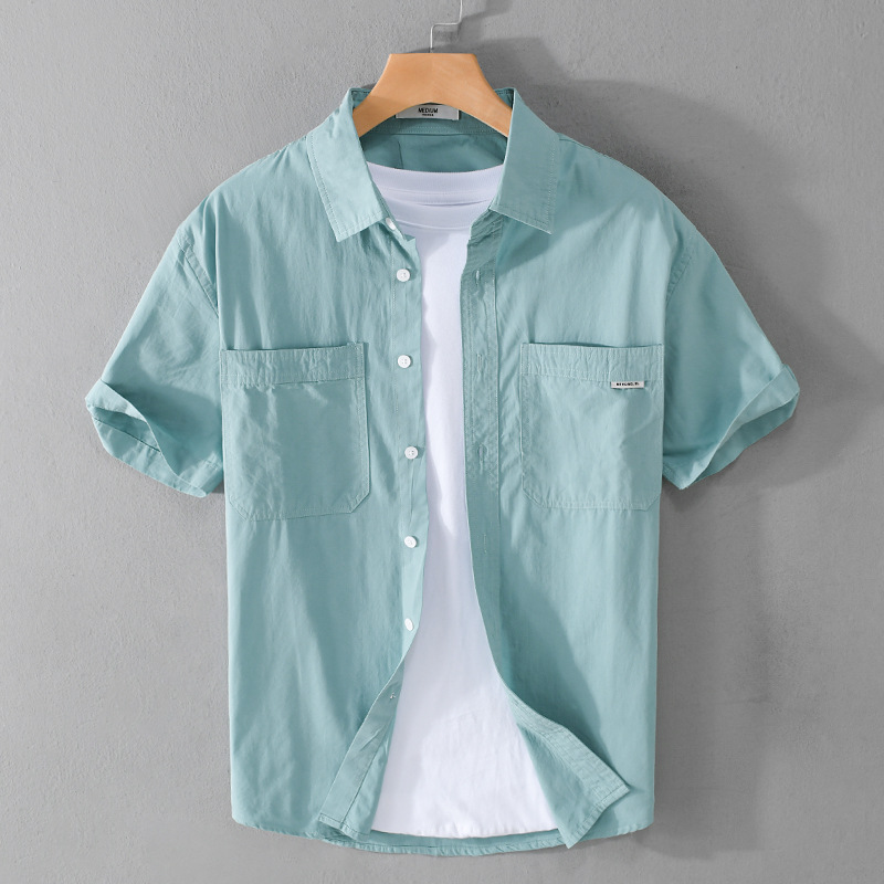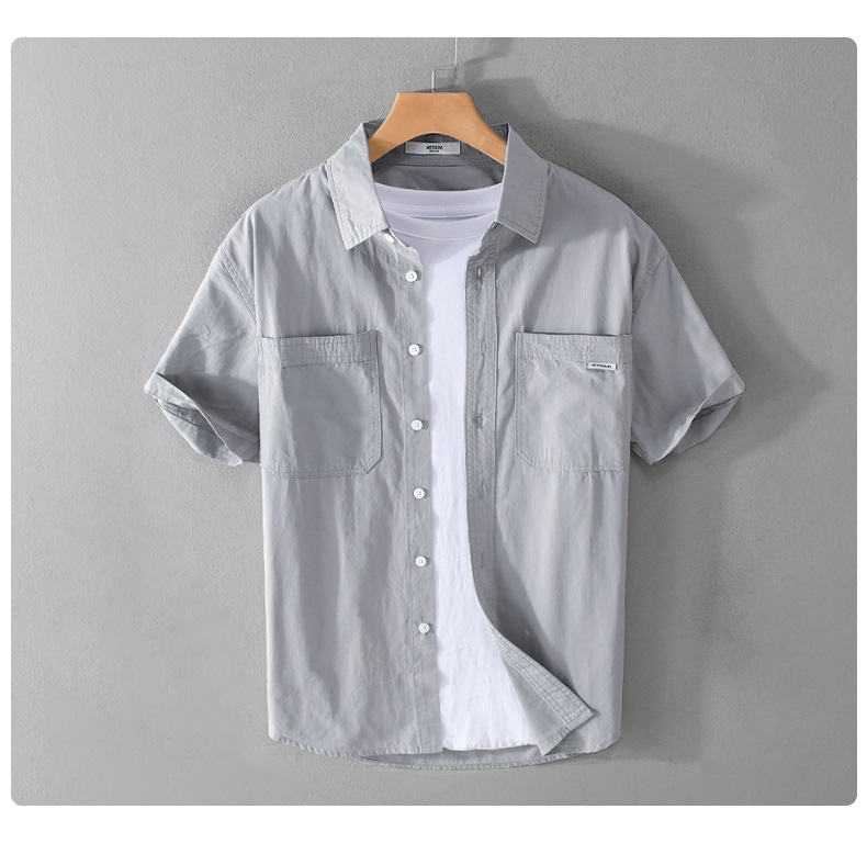 여름 남성 캐주얼 반팔 편안한 셔츠 느슨한 심플 작업복 모든 매치 청소년 신선한 남성 셔츠 706스토어 가기
