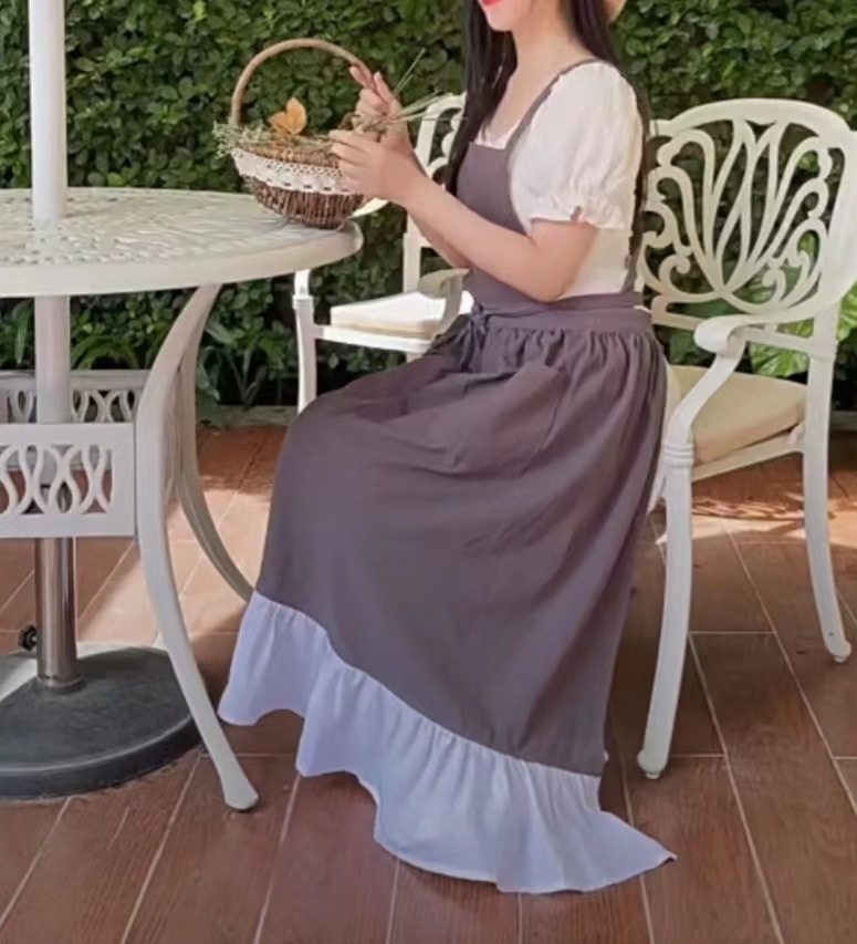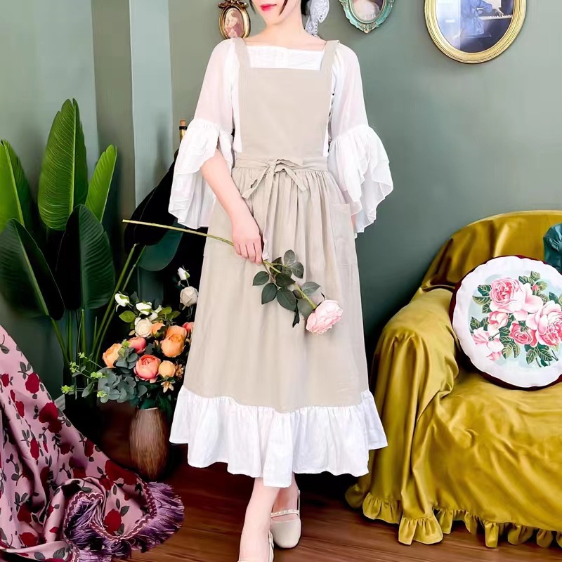 프랑스 빈티지 러플 단색 앞치마 로리타 스커트 INS 미술 학생 커피 숍 작업복