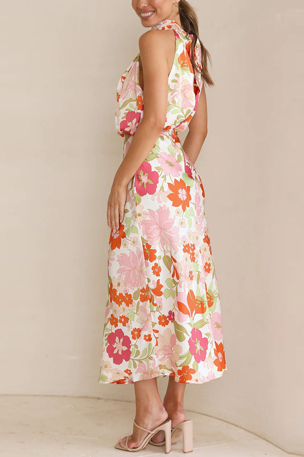 해외 무역 국경 독립 역 아마존 2023 가벼운 성숙한 기질 여성의 민소매 스트랩 인쇄 새틴 원피스