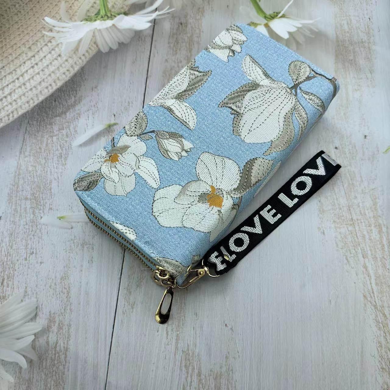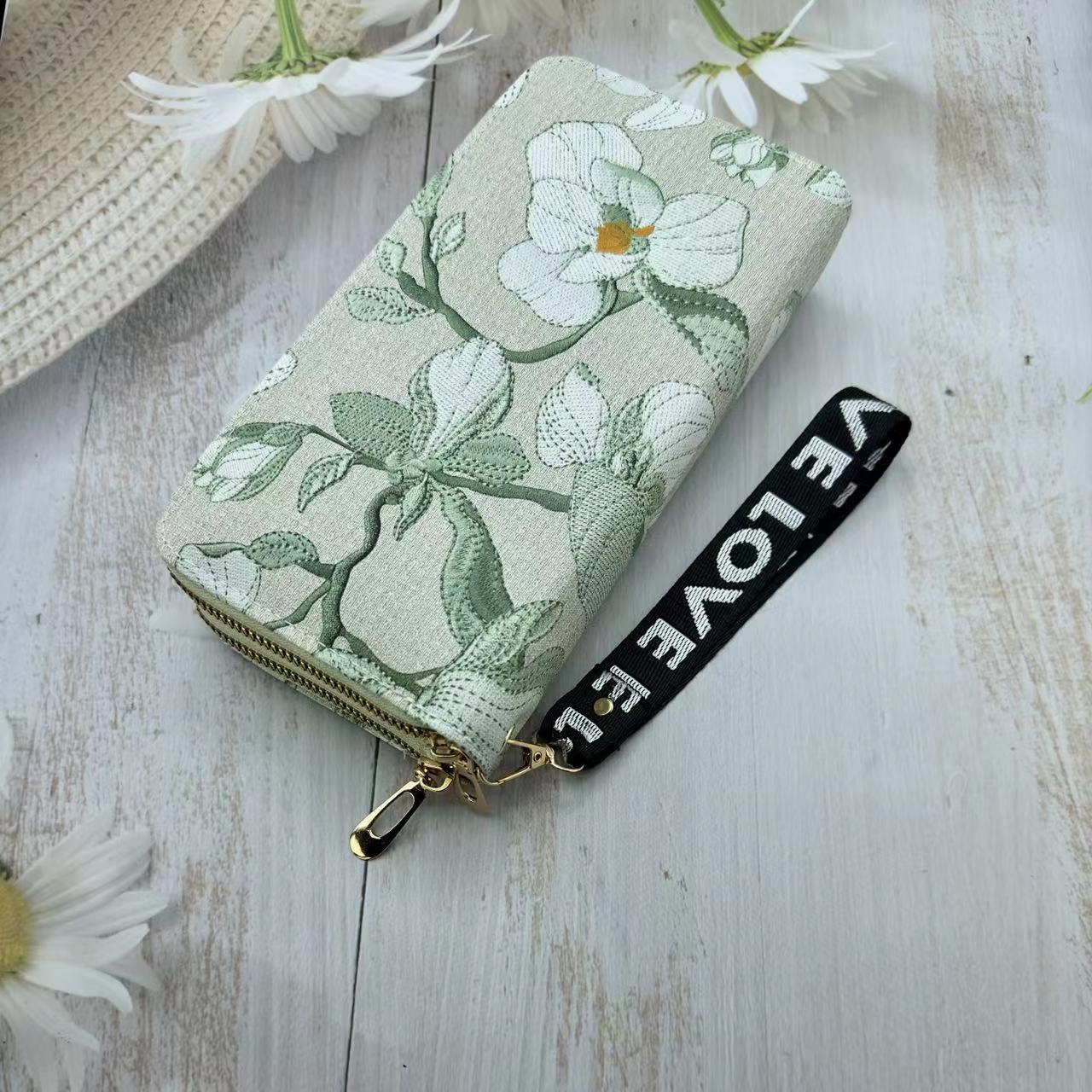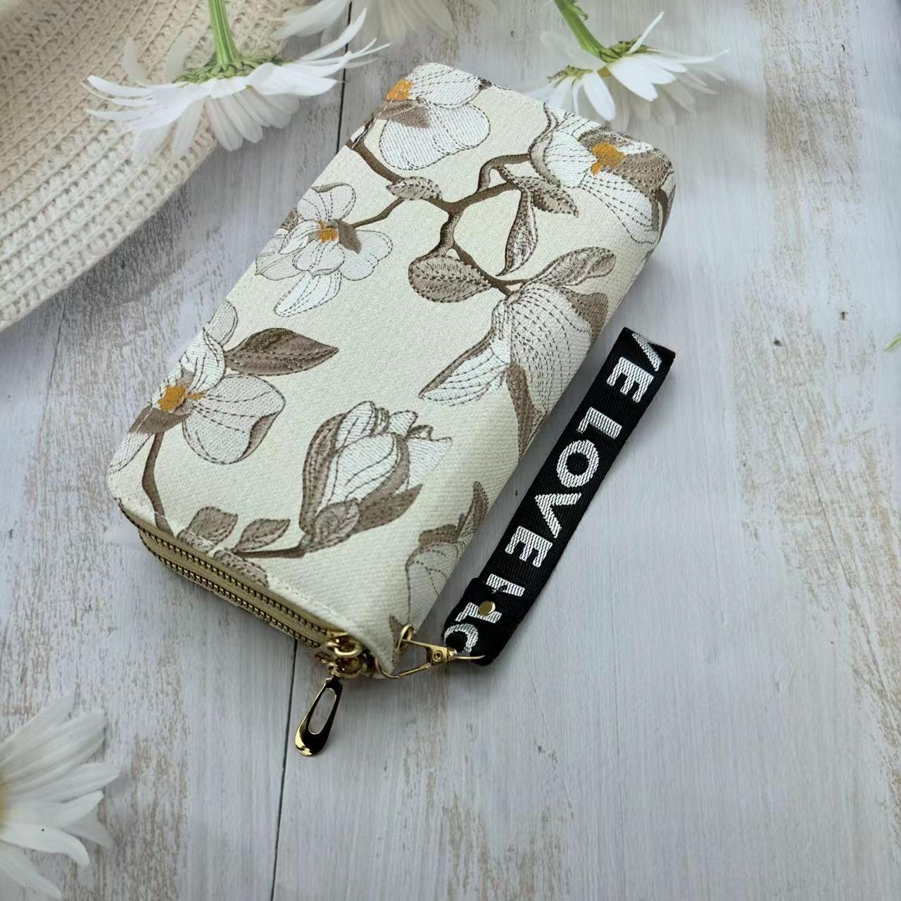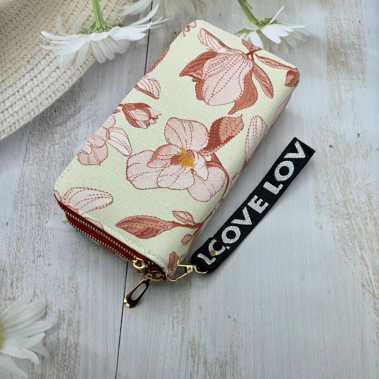 긴 지갑 꽃 pu 학생 더블 풀 여자 손 지갑 멀티 카드 유행 모든 경기 휴대 전화 가방 지갑스토어 가기