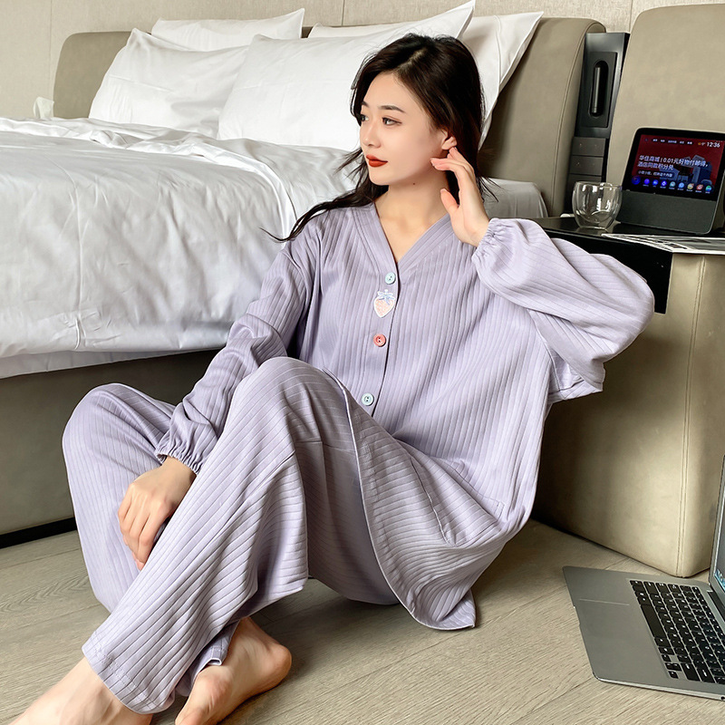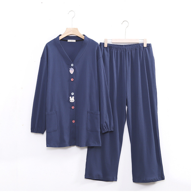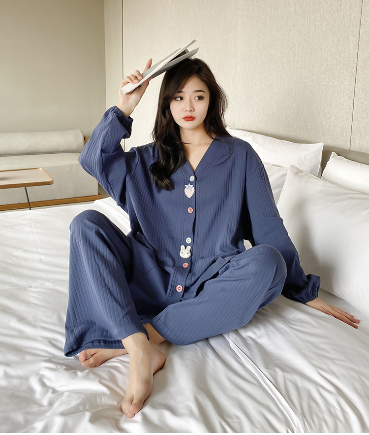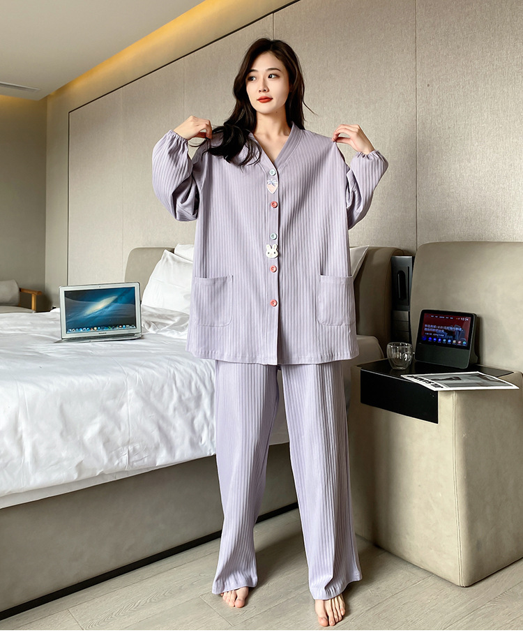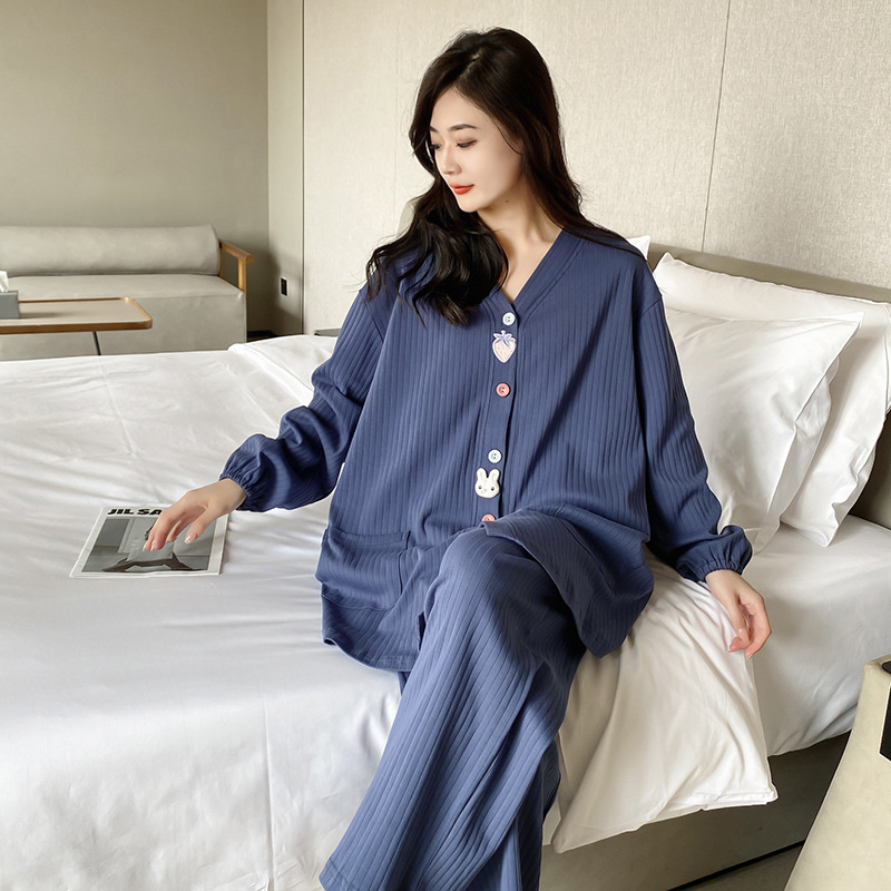 봄과 가을 여성의 긴팔 잠옷 플러스 사이즈 만화 세트 인쇄 홈웨어 긴팔 바지 투피스 코튼 가디건스토어 가기