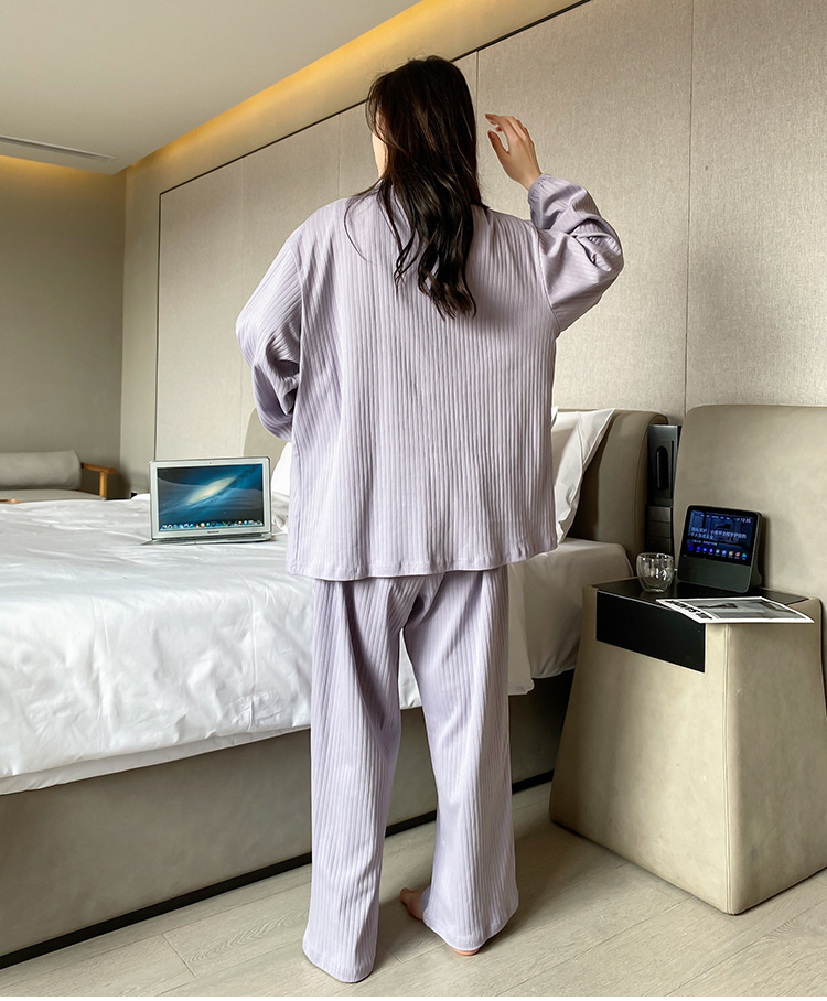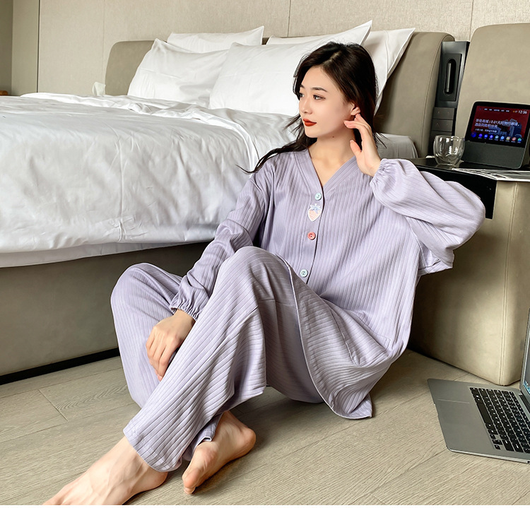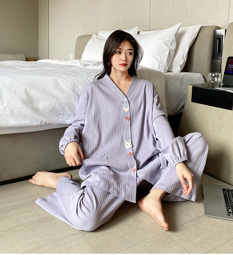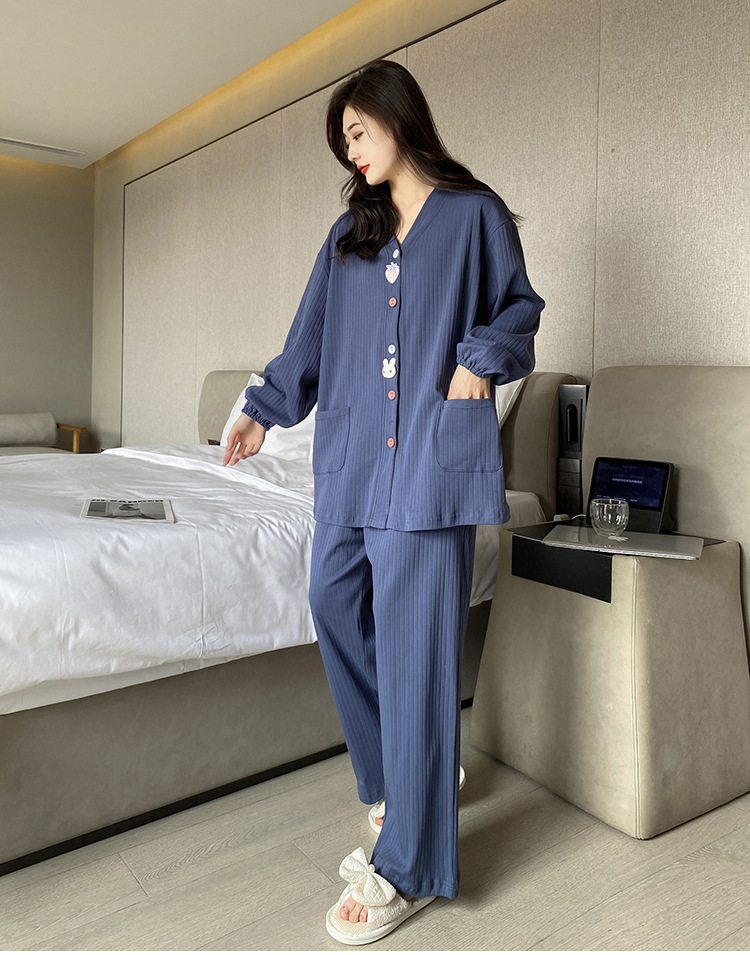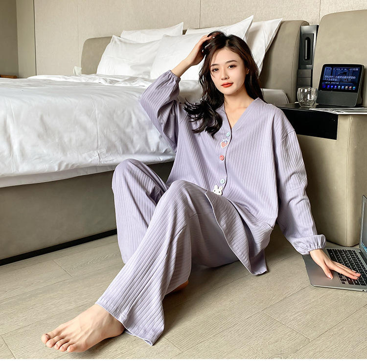 봄과 가을 여성의 긴팔 잠옷 플러스 사이즈 만화 세트 인쇄 홈웨어 긴팔 바지 투피스 코튼 가디건스토어 가기