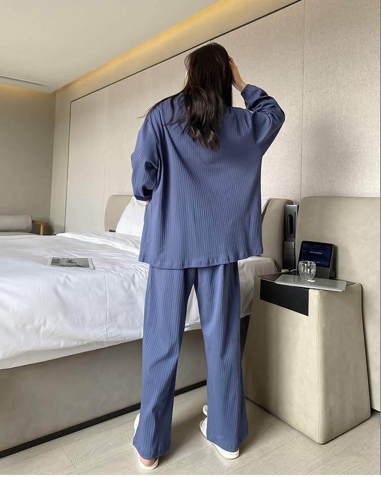 봄과 가을 여성의 긴팔 잠옷 플러스 사이즈 만화 세트 인쇄 홈웨어 긴팔 바지 투피스 코튼 가디건