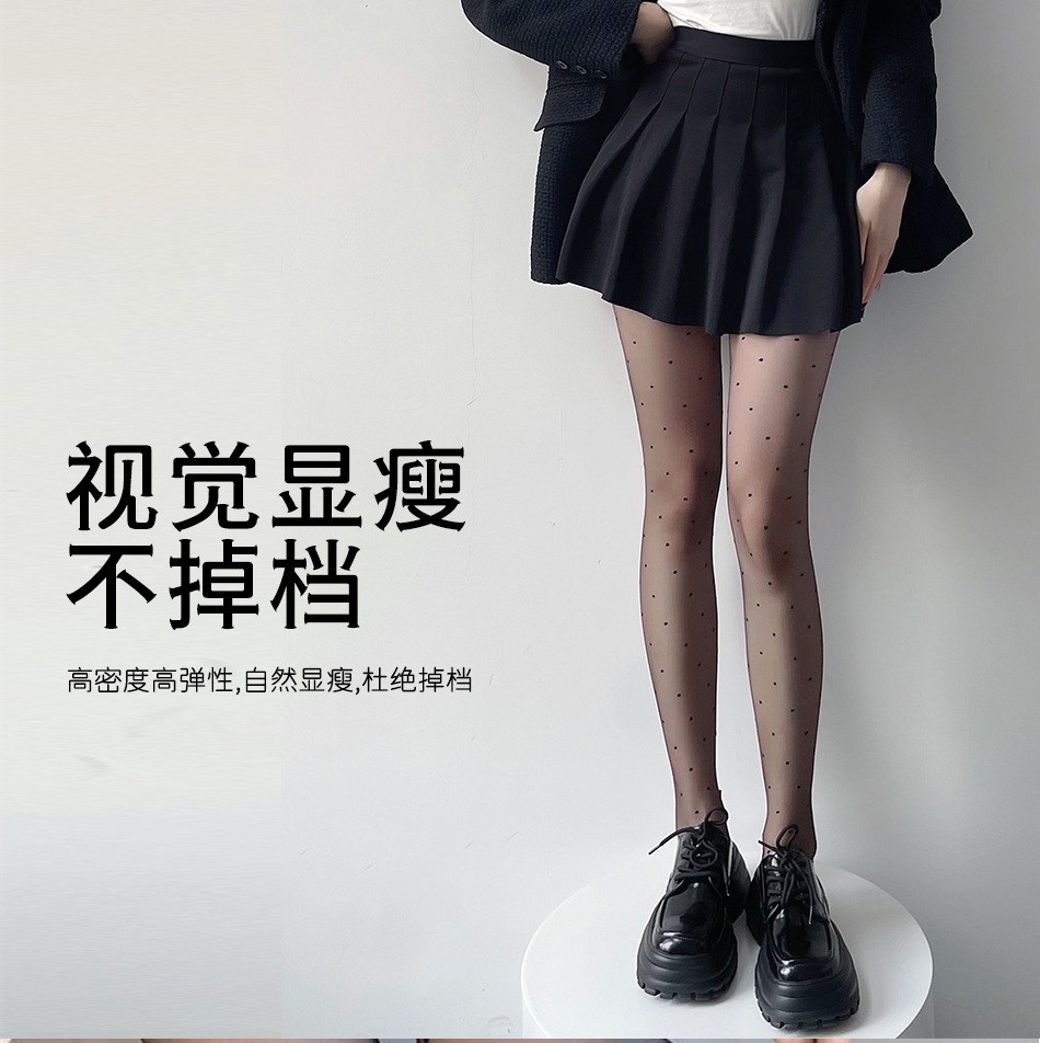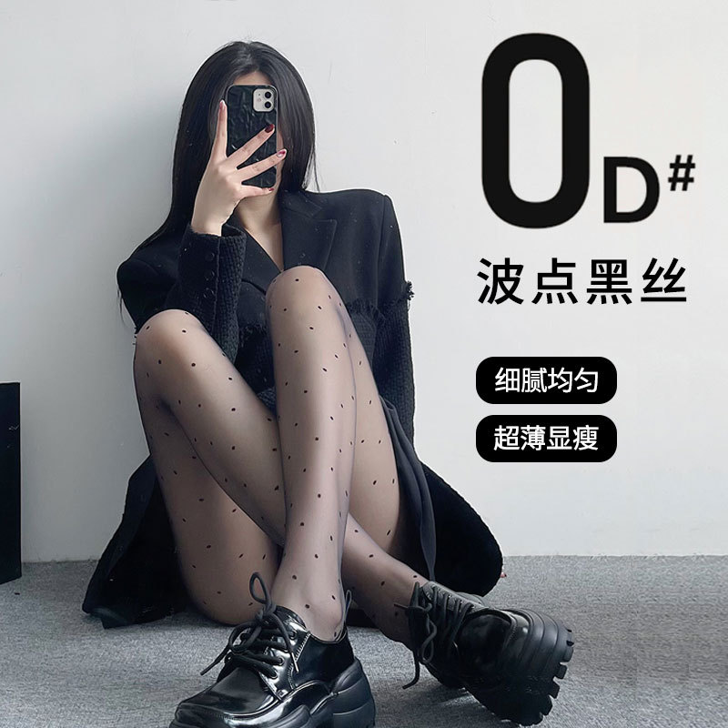 얇은 실크 스타킹 여성의 봄과 가을 슈퍼 투명 0d 폴카 도트 블랙 실크 섹시한 블랙 초박형 기모 모든 컷 파인애플 양말