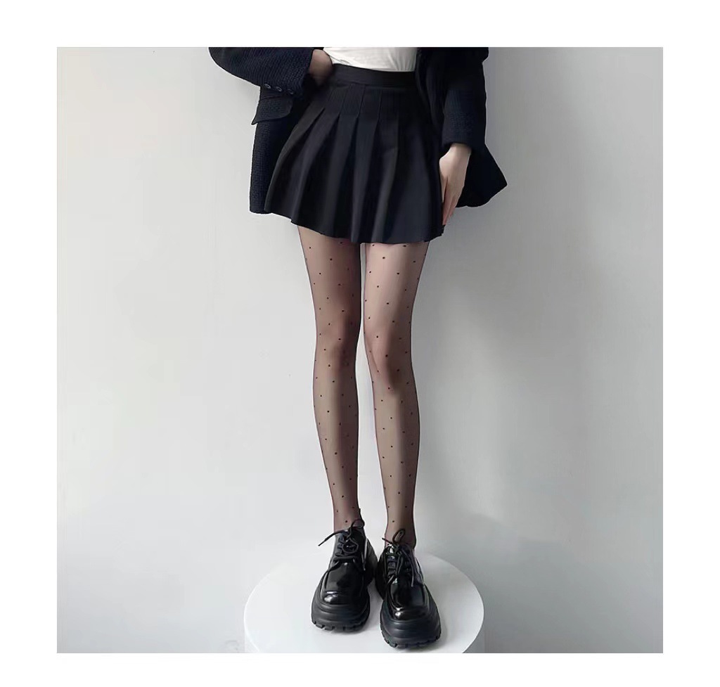 얇은 실크 스타킹 여성의 봄과 가을 슈퍼 투명 0d 폴카 도트 블랙 실크 섹시한 블랙 초박형 기모 모든 컷 파인애플 양말스토어 가기