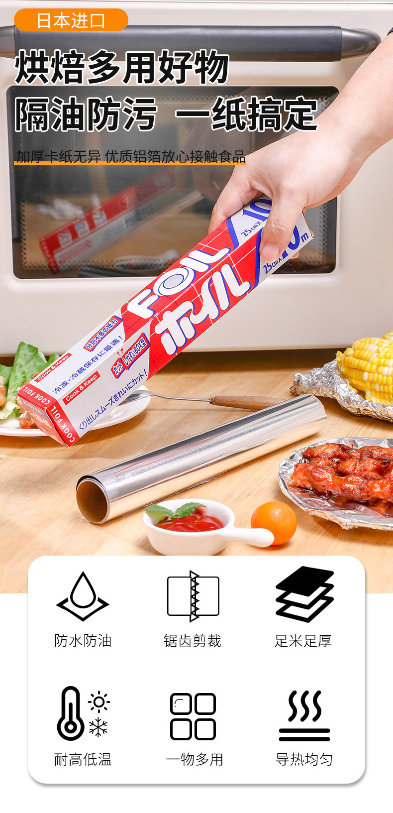 일본 수입 베이킹 페이퍼 알루미늄 호일 종이 식품 학년 바베큐 틴 페이퍼 가정용 주방 식품 난방 알루미늄 호일 틴 종이스토어 가기