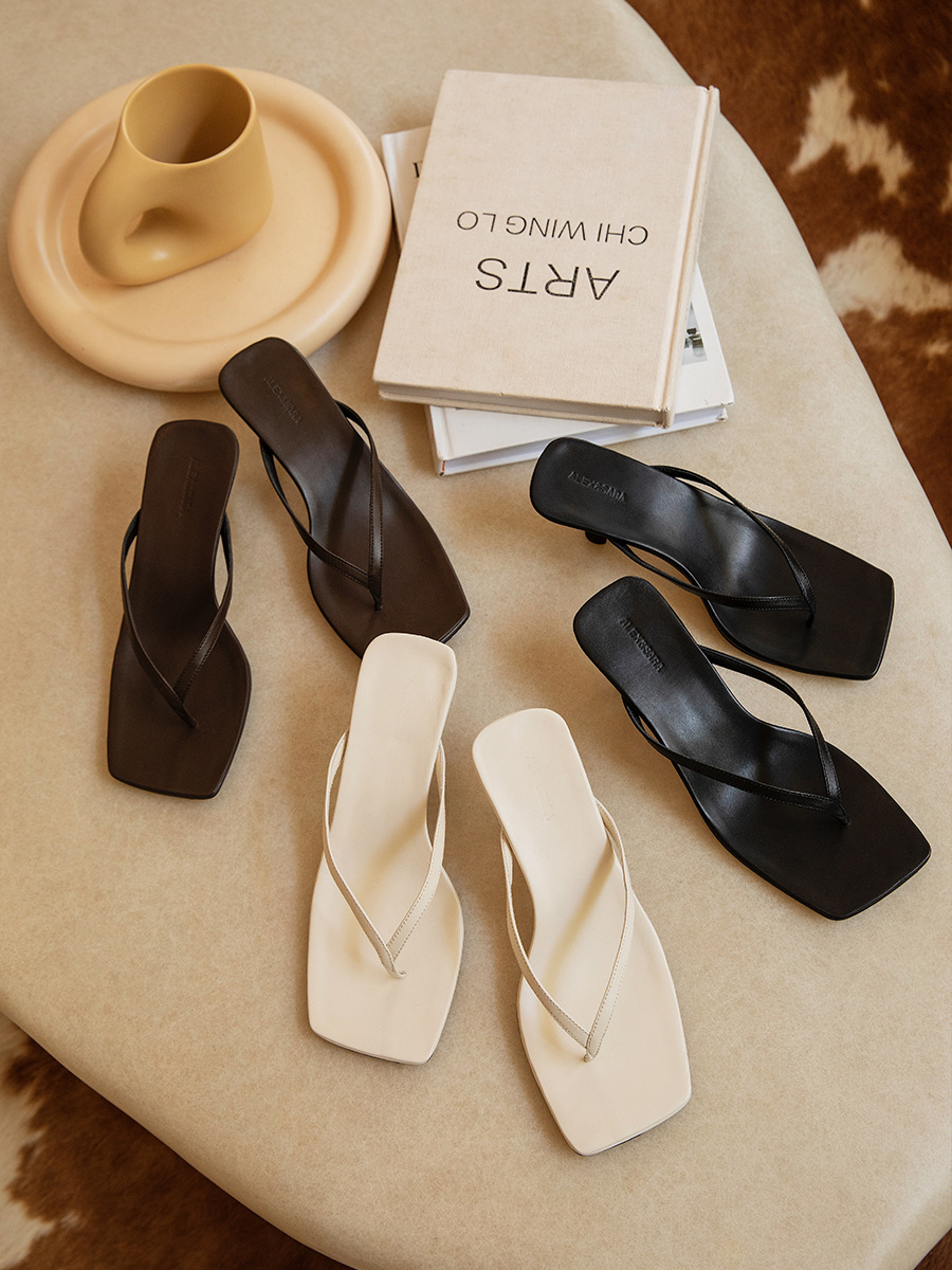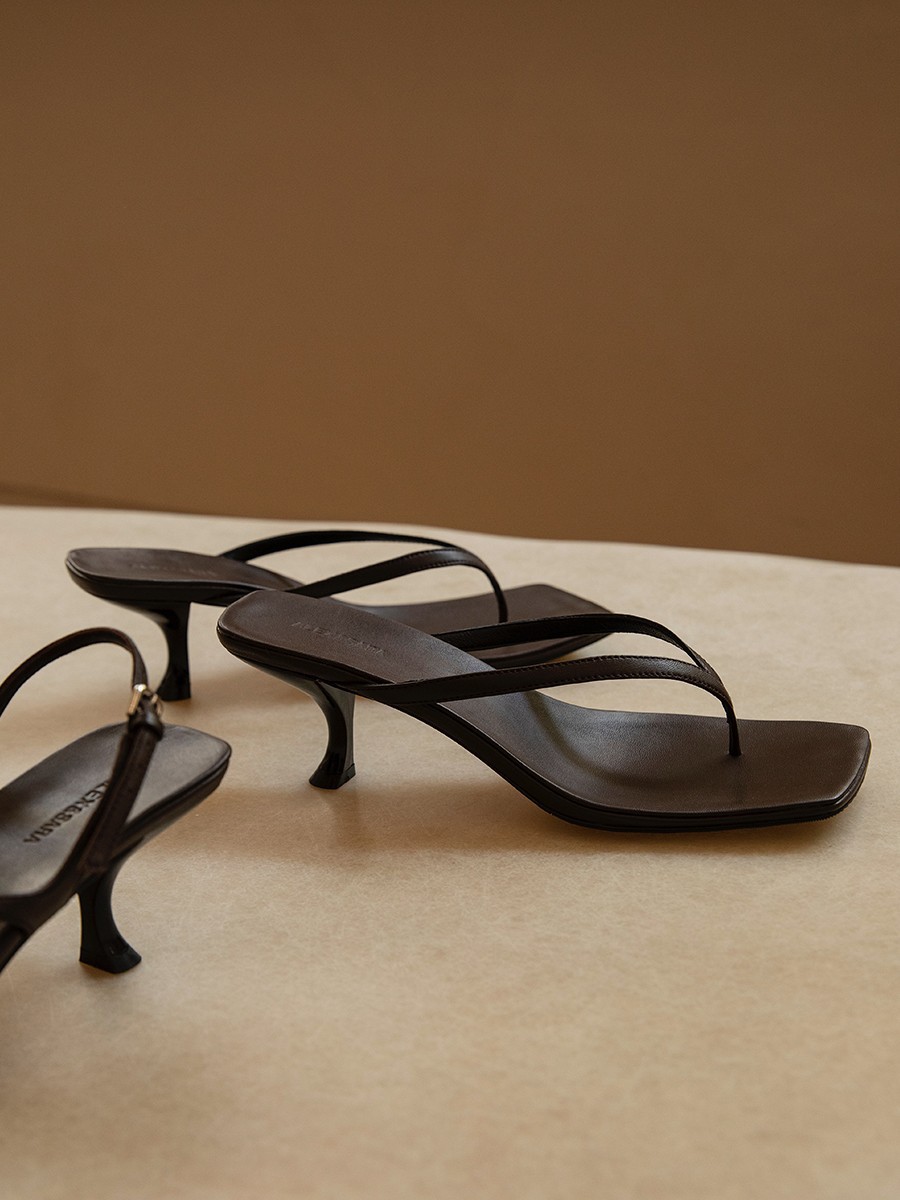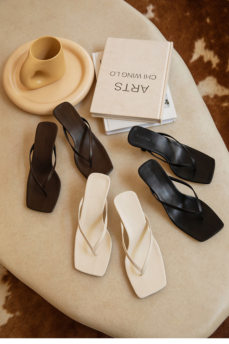 공장 다이파 봄과 여름 새로운 스퀘어 토 양가죽 새끼 고양이 힐 클립 샌들 여성용 미드 힐 플립 플롭 하프 슬리퍼
