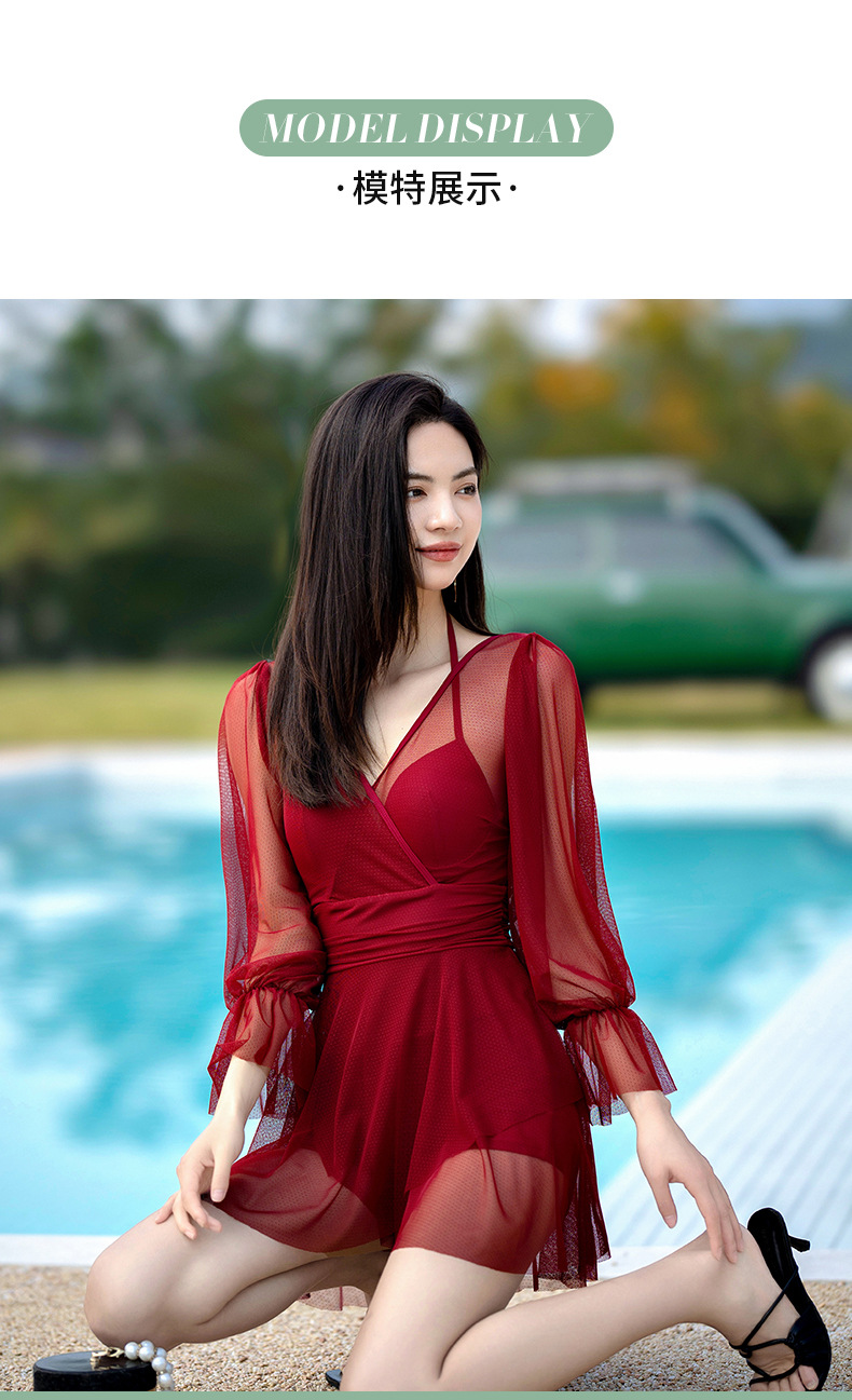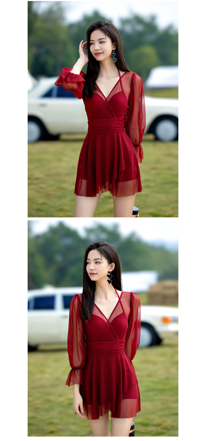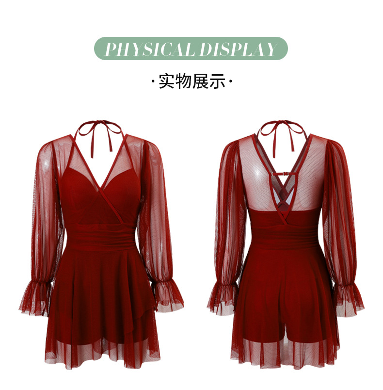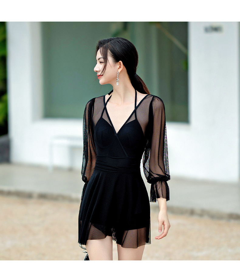 수영복 여성용 하이 웨이스트 배꼽 덮기 슬리밍 긴팔 원피스 수영복 여성용 여름 새로운 한국 스타일 보수적 인 해변 휴가 수영복스토어 가기