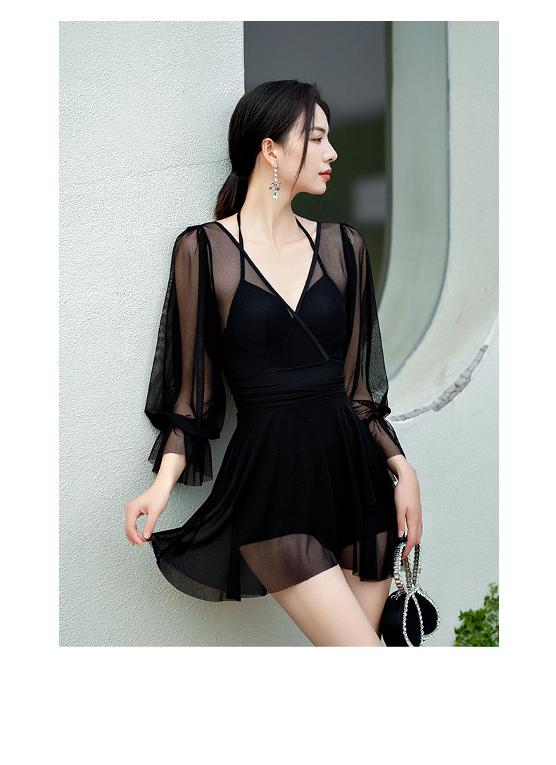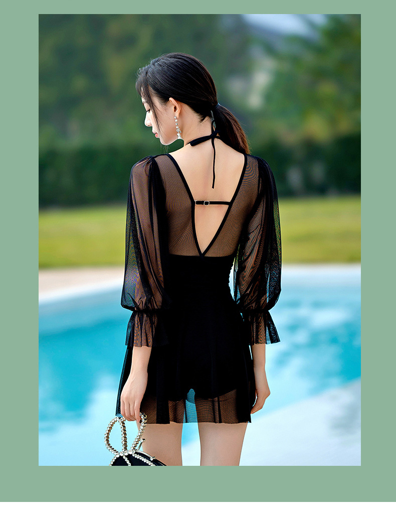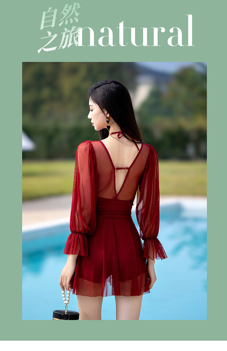 수영복 여성용 하이 웨이스트 배꼽 덮기 슬리밍 긴팔 원피스 수영복 여성용 여름 새로운 한국 스타일 보수적 인 해변 휴가 수영복스토어 가기