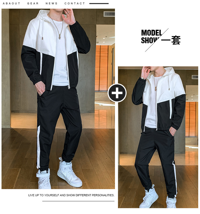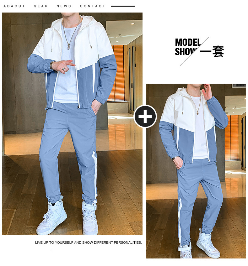 세트 남자의 2023 새로운 캐주얼 세트 청소년 한국 스타일 핸섬 모든 경기 투피스 플러스 사이즈 스포츠 세트 트렌디스토어 가기