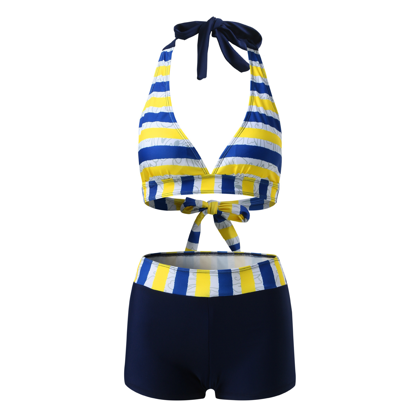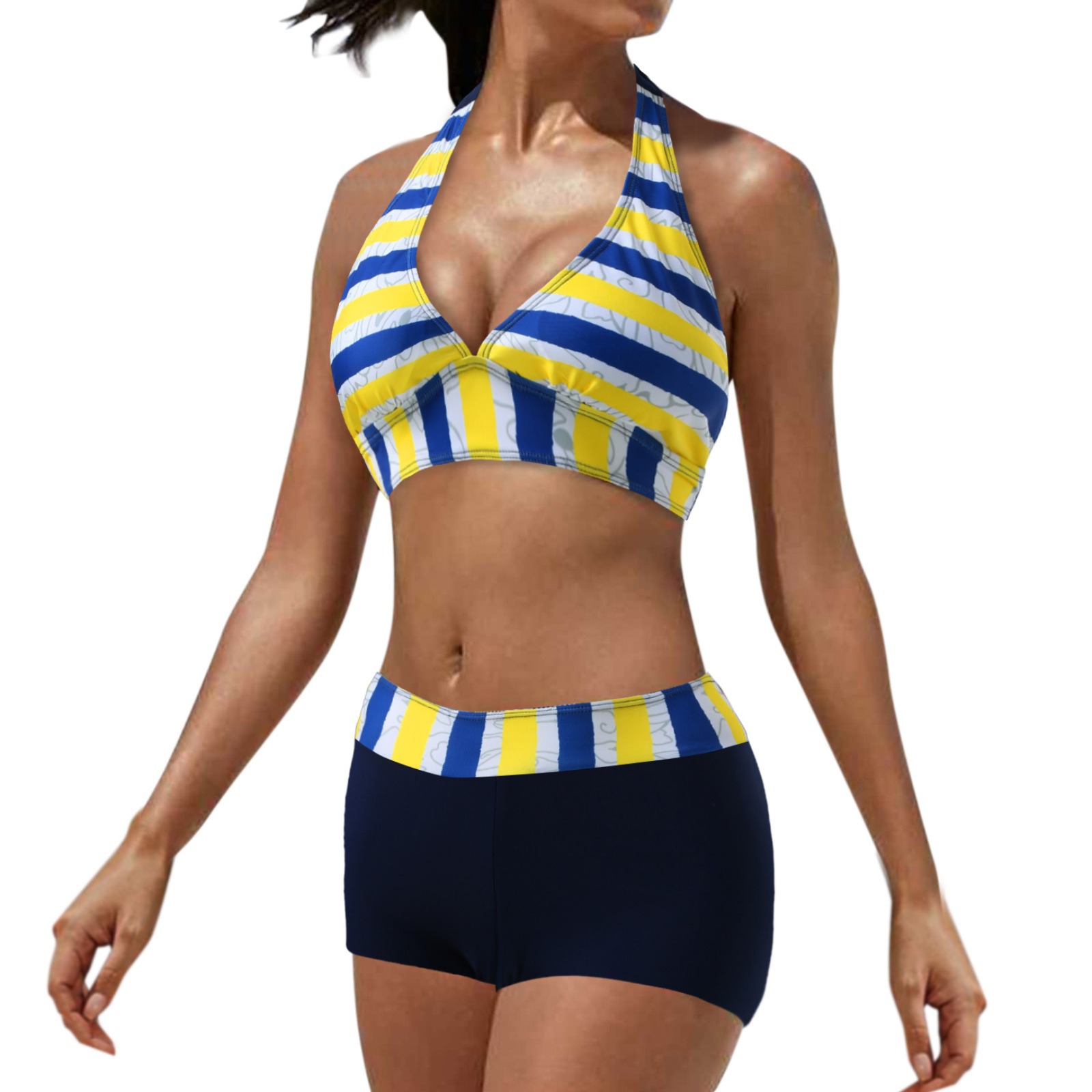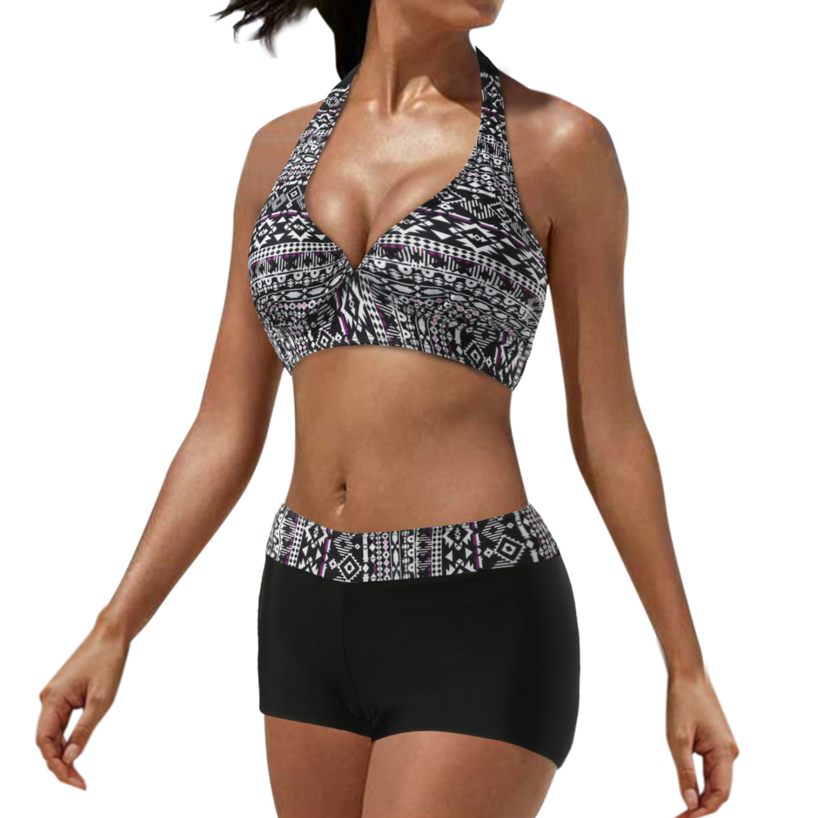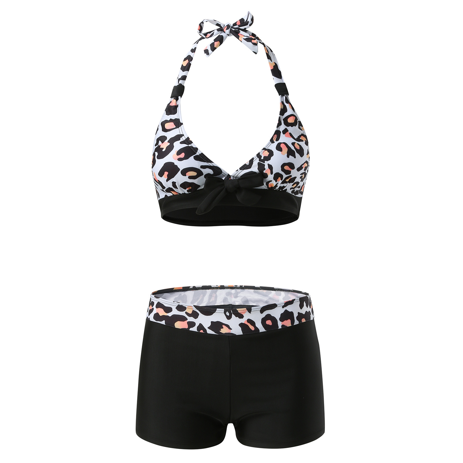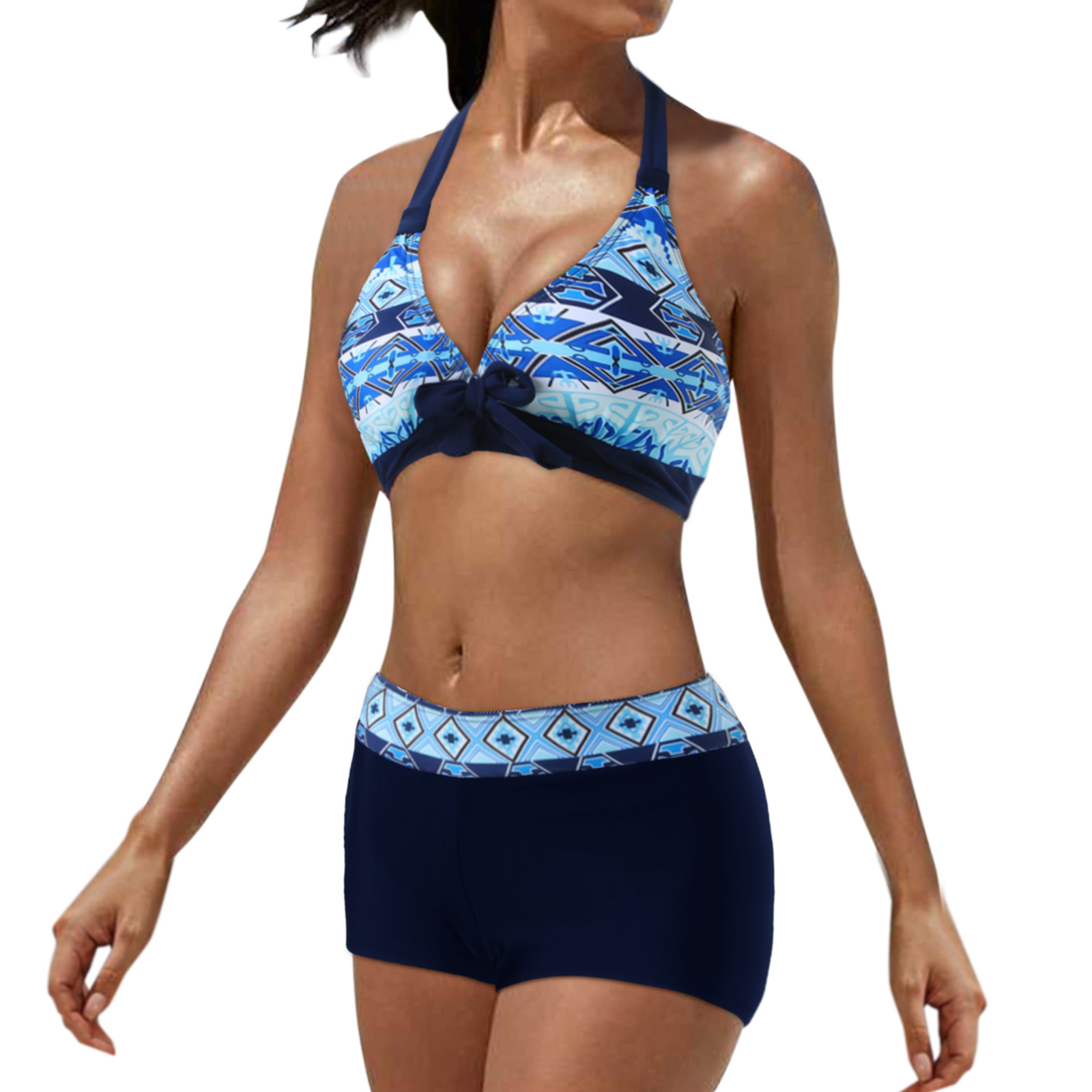 유럽과 미국 수영복 스플릿 멀티 컬러 투피스 수영복 복서 스트랩 비키니 보수 수영복 아마존