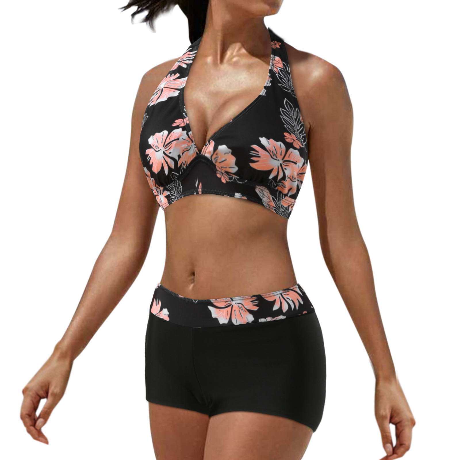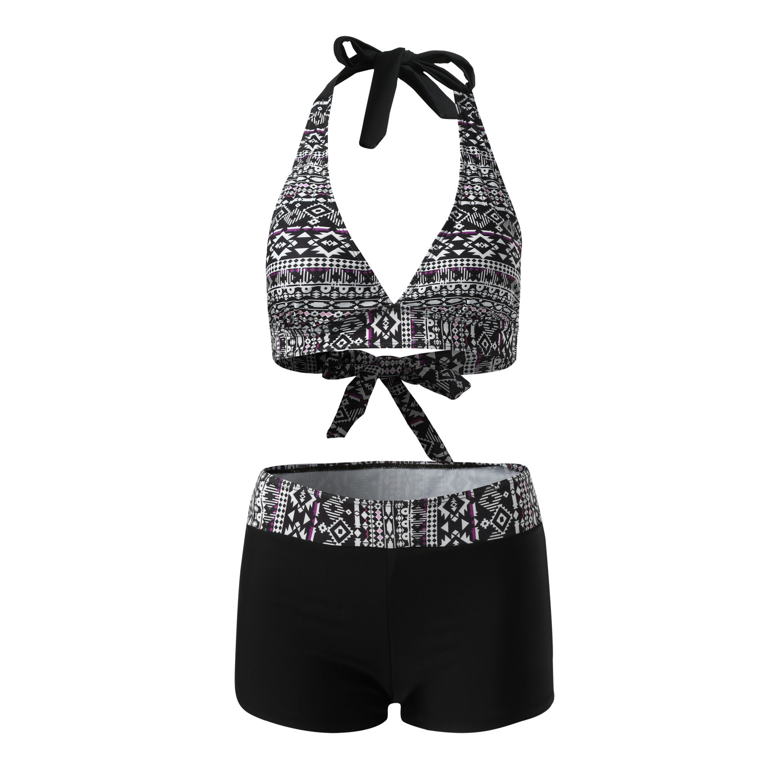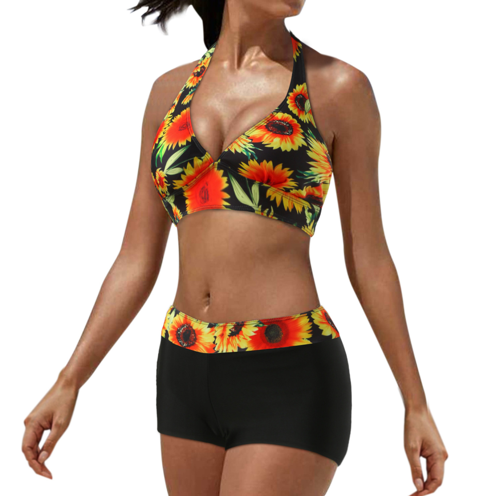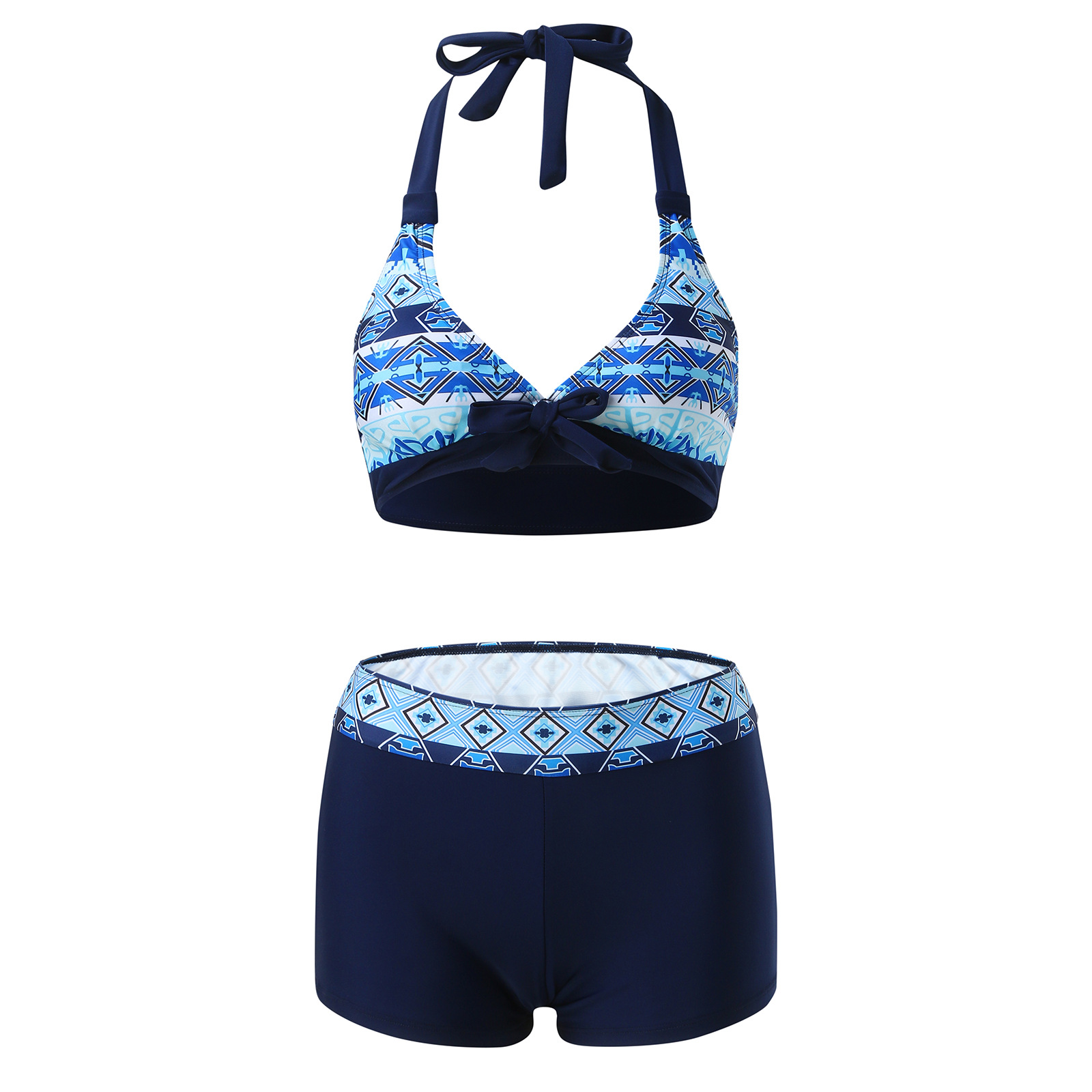 유럽과 미국 수영복 스플릿 멀티 컬러 투피스 수영복 복서 스트랩 비키니 보수 수영복 아마존
