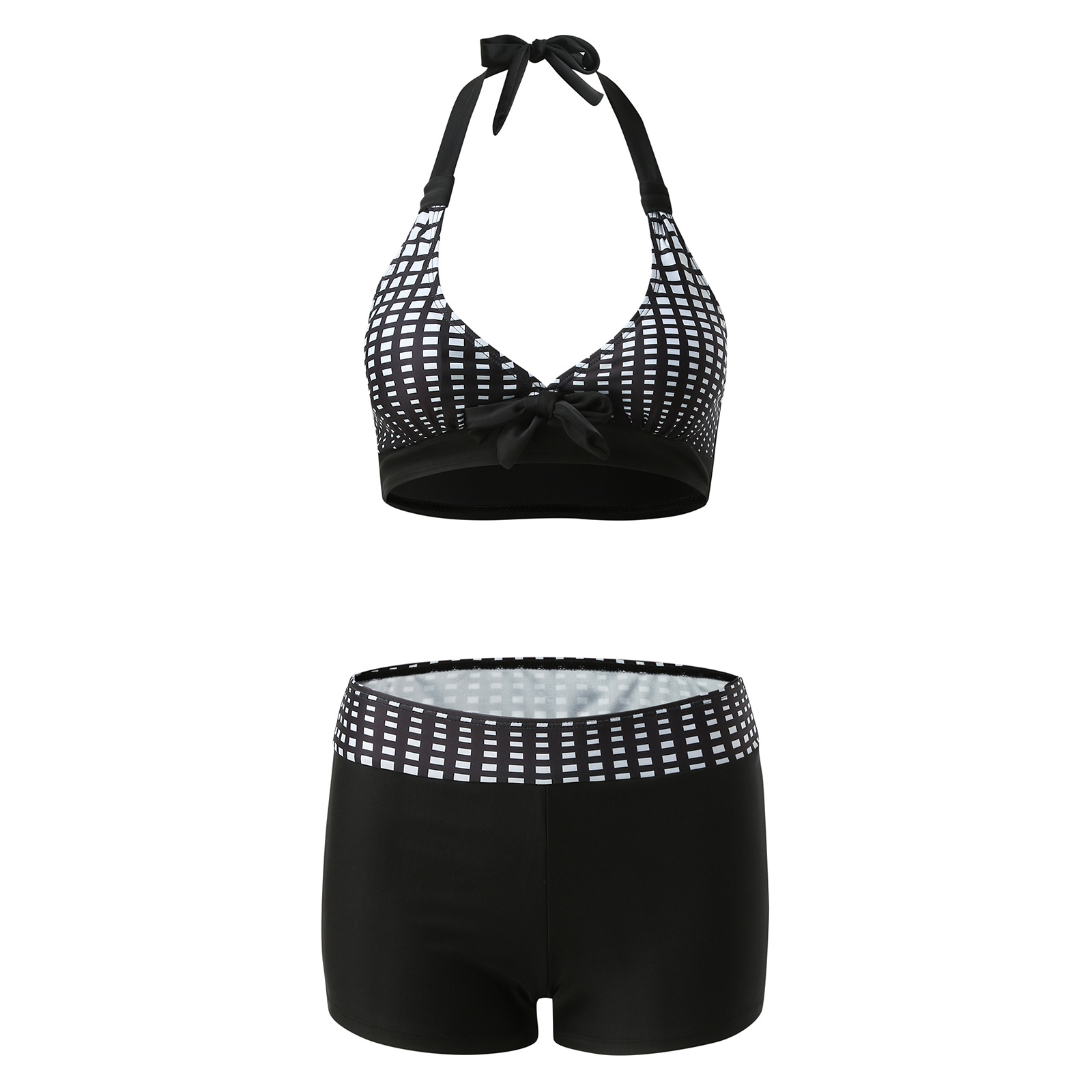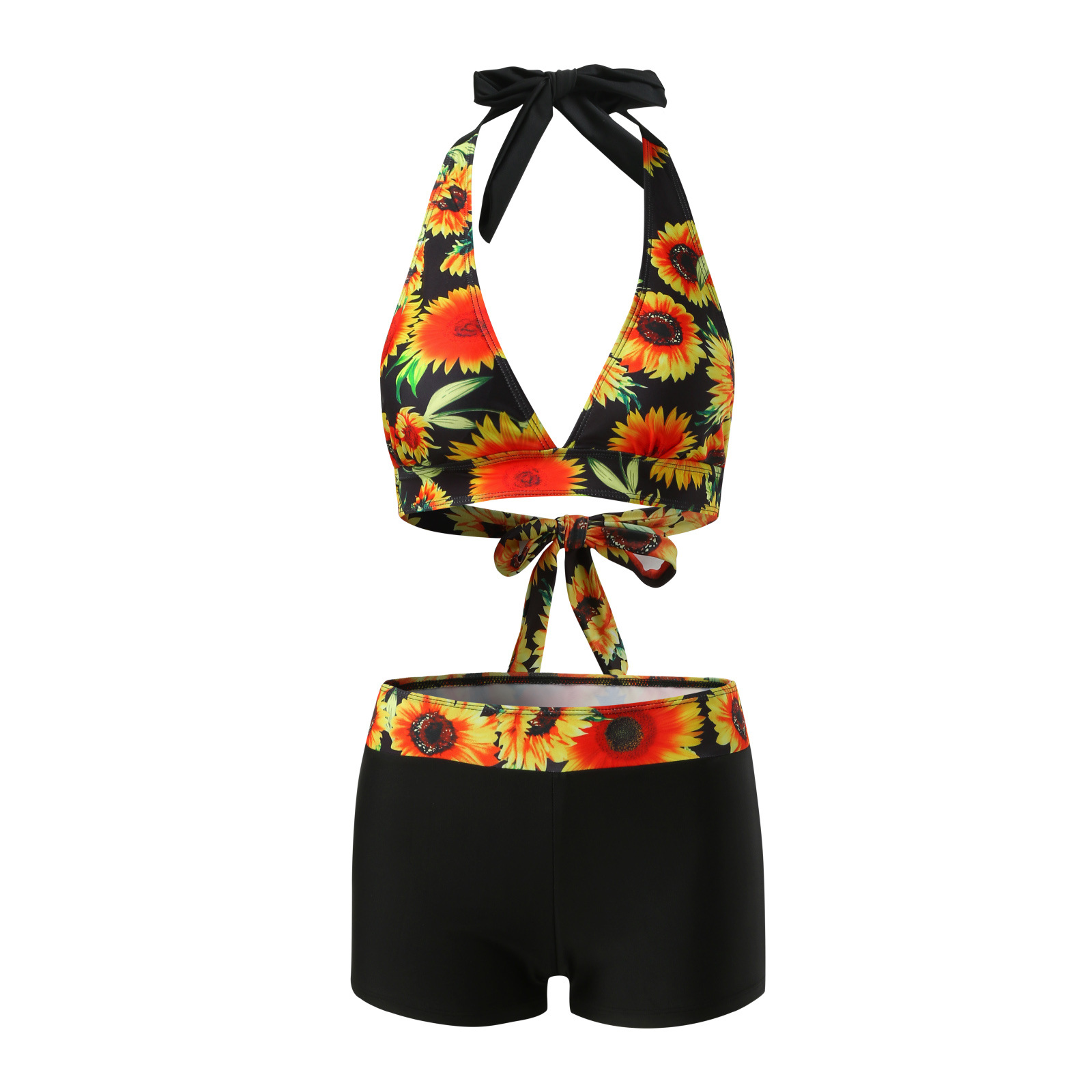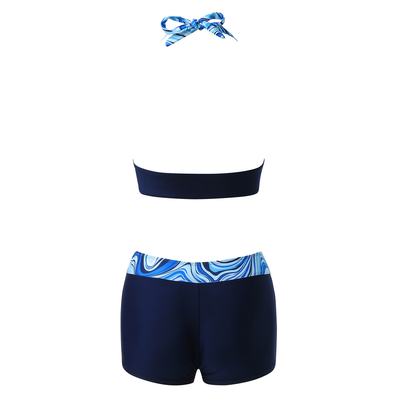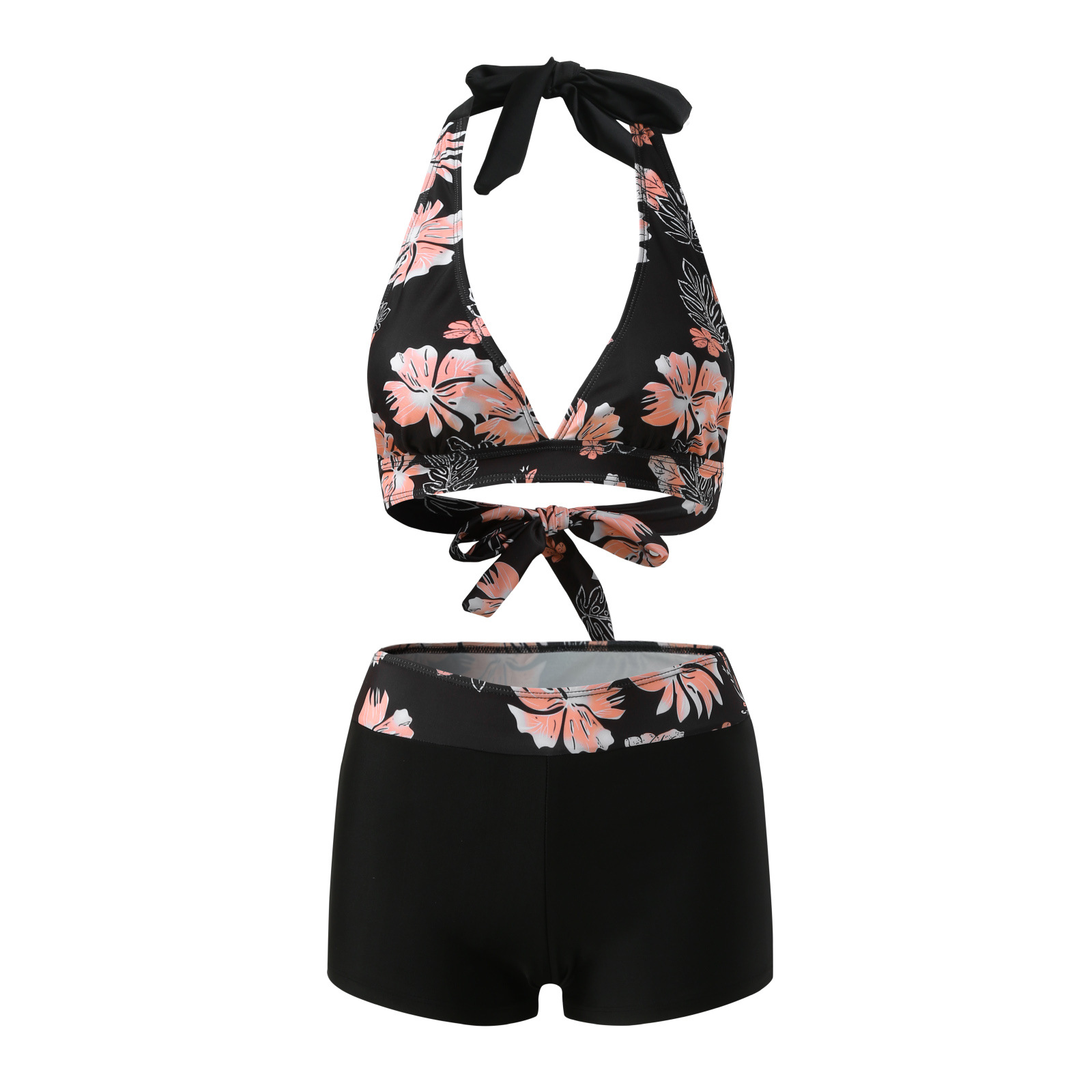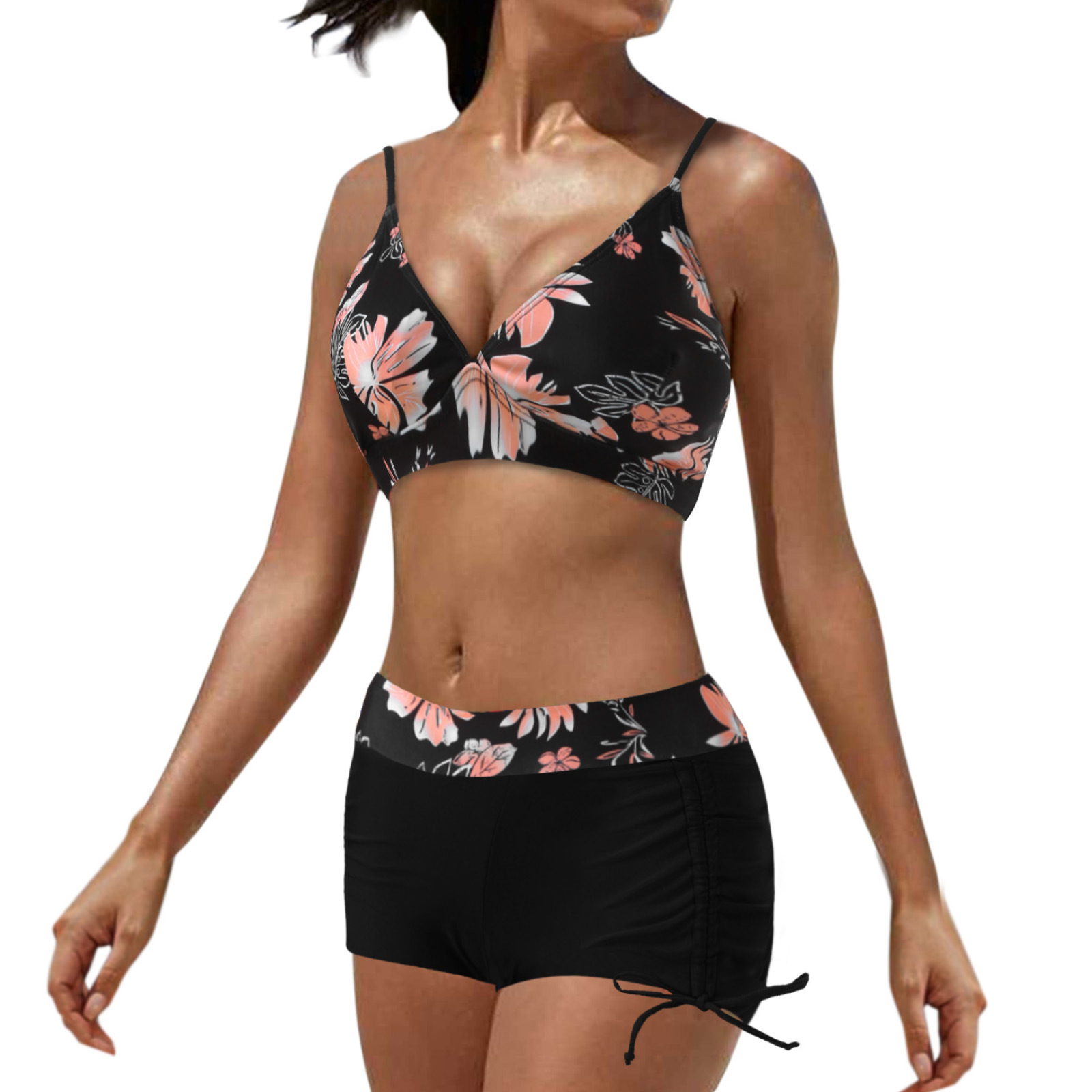 유럽과 미국 수영복 스플릿 멀티 컬러 투피스 수영복 복서 스트랩 비키니 보수 수영복 아마존