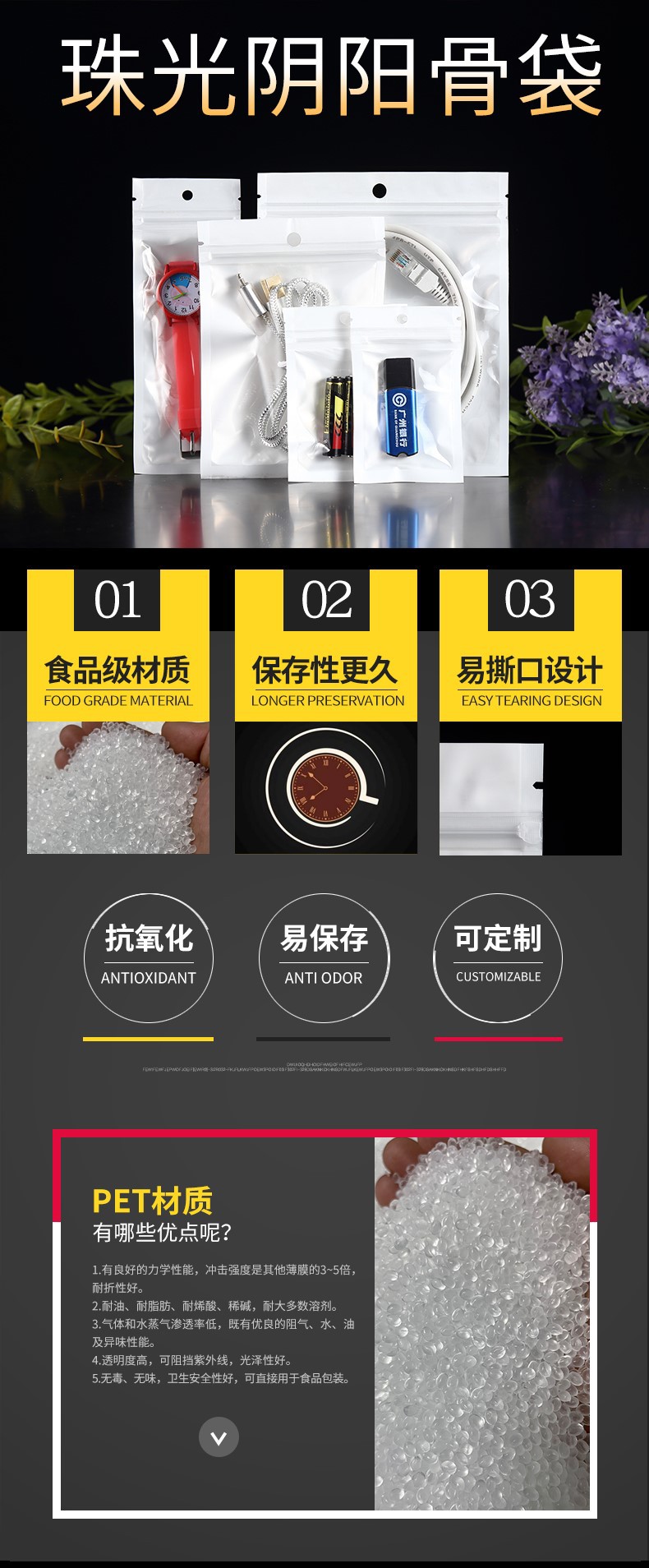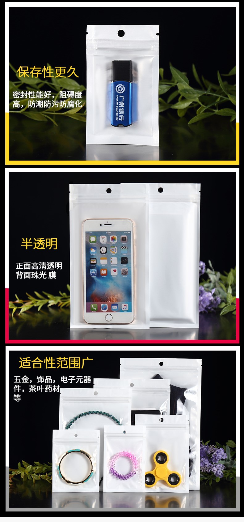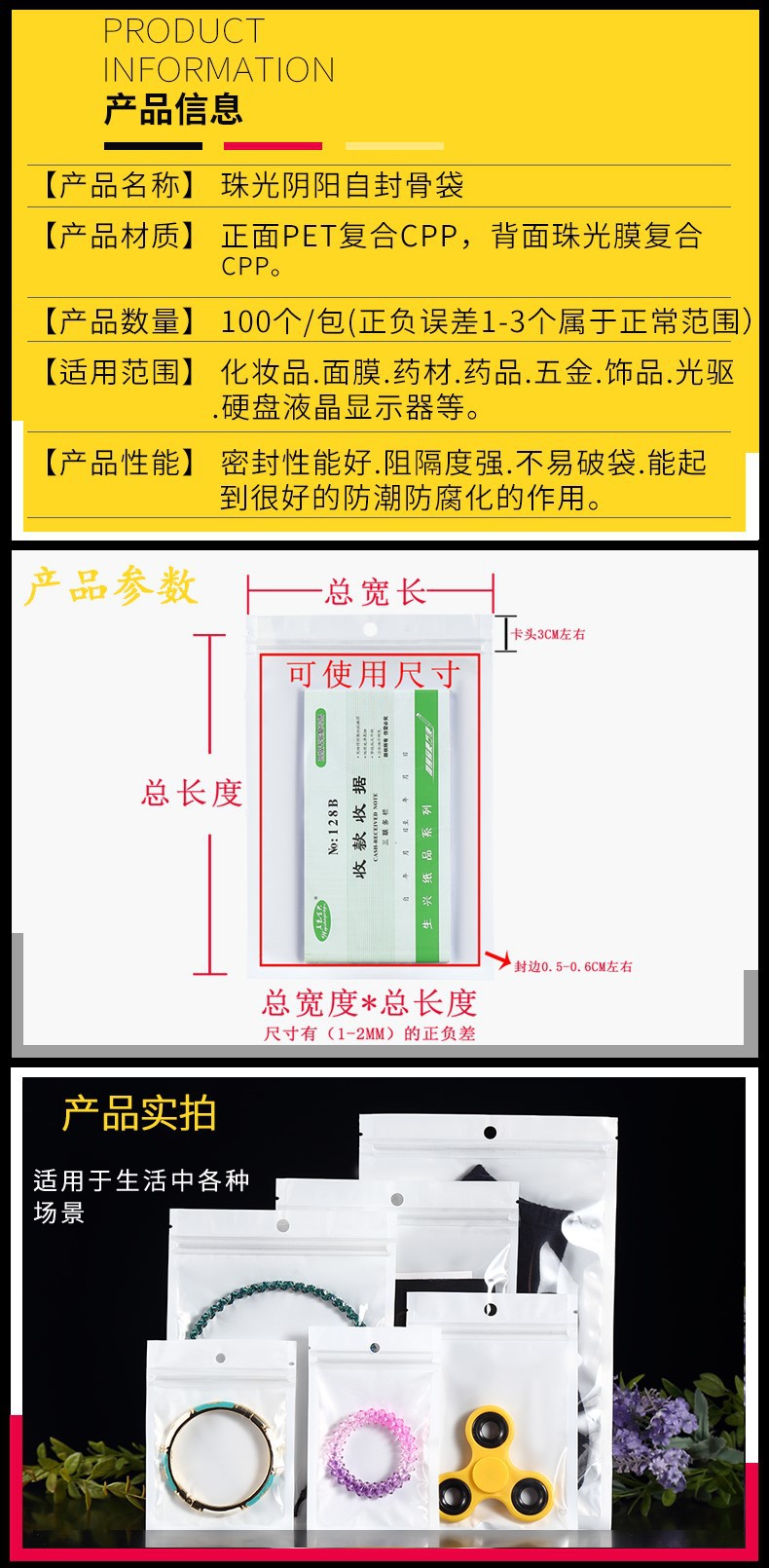자체 밀봉 백 진주 필름 음양 뼈 가방 반투명 비닐 가방 낚시 장비 밀폐 가방 화이트 보석 포장 가방 도매스토어 가기