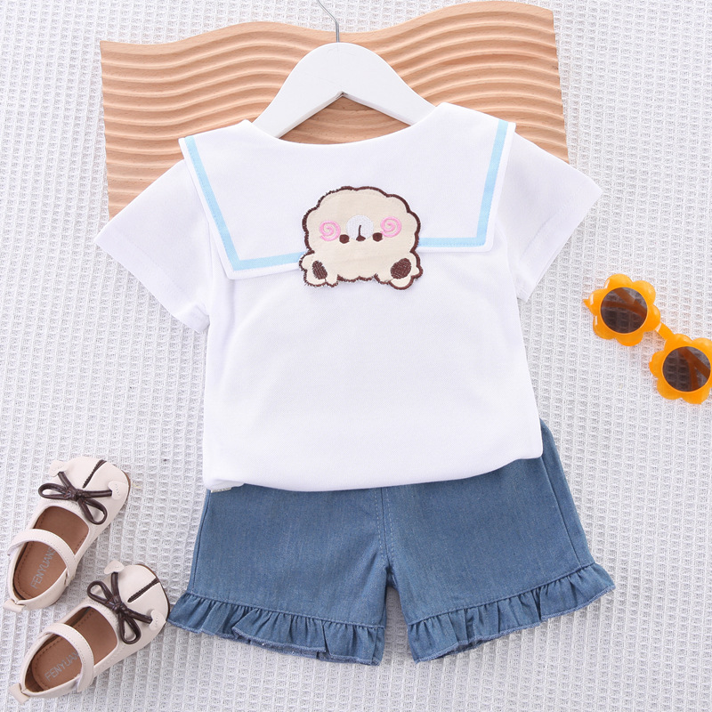 여아 스포츠 세트 여름 세련된 어린이 세트 여아 해군 칼라 옷 만화 아기 소녀 유행스토어 가기