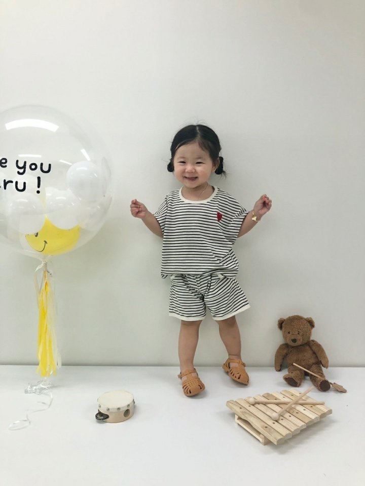 2023 여름 한국 스타일 아기 소년과 소녀 스포츠 줄무늬 세트 문자 세트 아기 서양 스타일 만화 세트스토어 가기