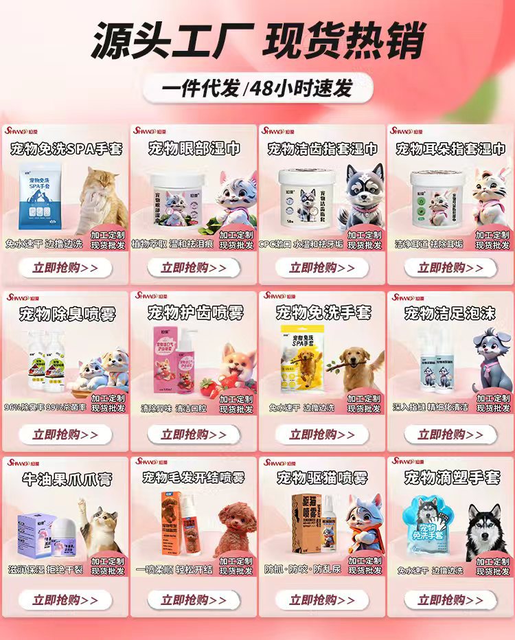 Xumo 애완 동물 일회용 장갑 일회용 목욕 방지 청소 장갑 물티슈 고양이와 개 용품 인기 판매 모델